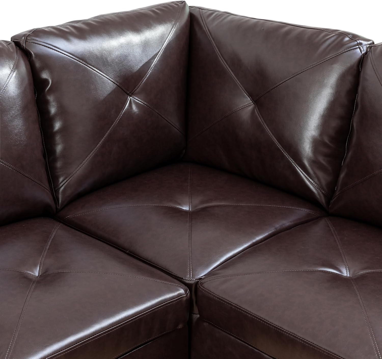 97" Living Room Modern Sleeper with Storage Ottoman Faux Leather L-Shape Modular Sectional Sofas Lounge Couch Comfy Upholstered Furniture Apartment, Studio, Office, Brown