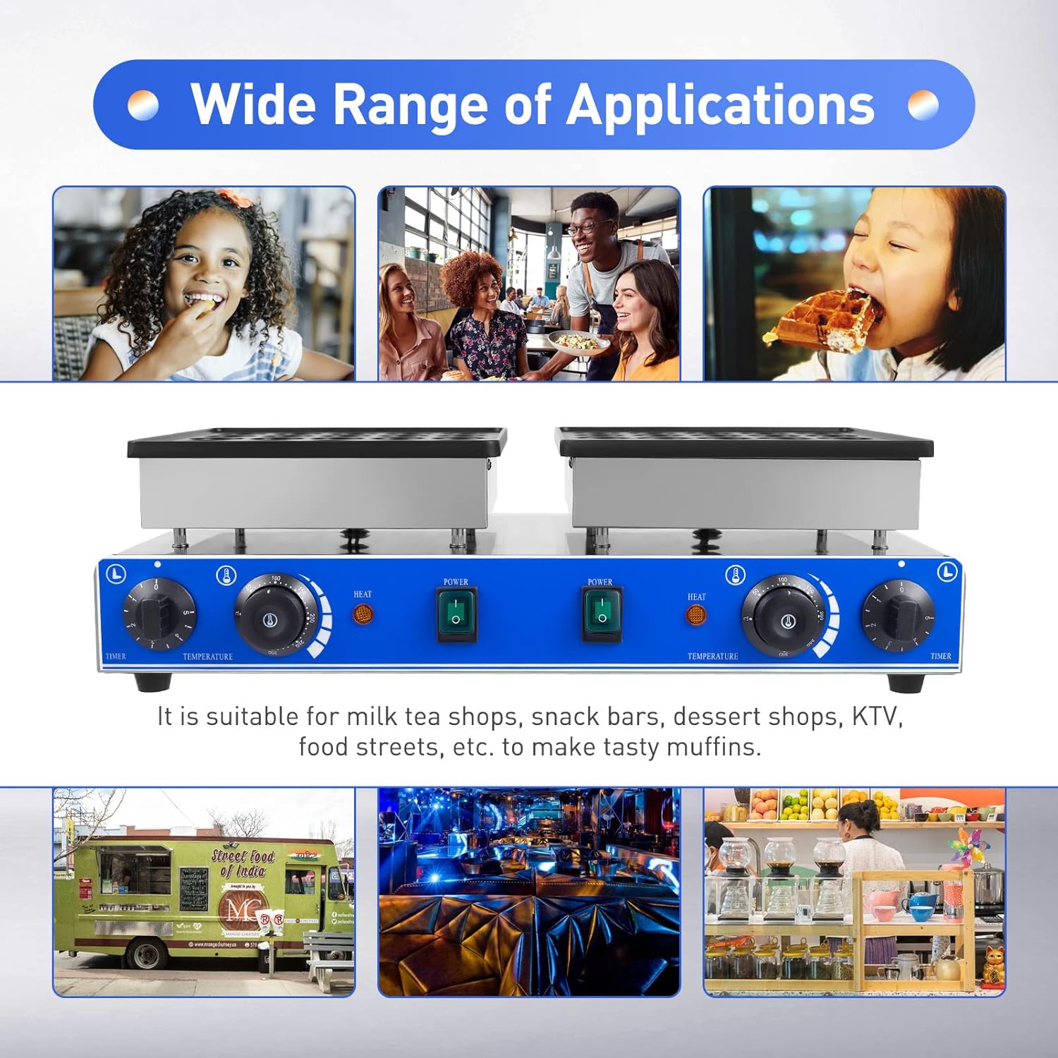 50PCS Mini Dutch Pancake Baker - 1700W Commercial Waffle Maker, Non-Stick, Dual Heads, Separate Controls & Timers, Portable 1.8 Inches Muffin Maker for Home and Restaurants