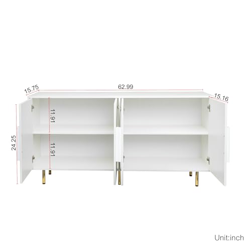 Sideboard Cabinet 31.50 inch 2-Door White with Golden Legs - Stylish and Functional Storage Solution