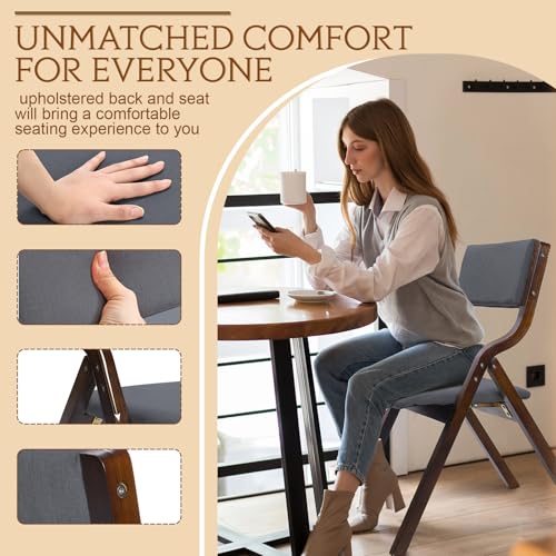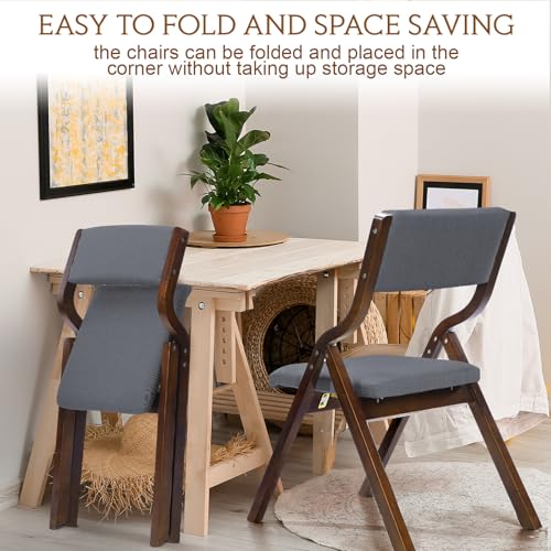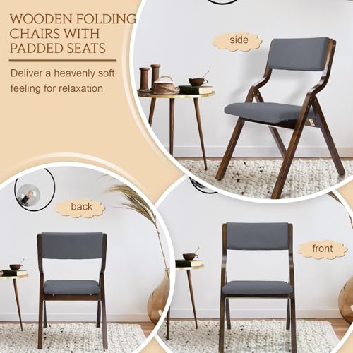 Wooden Folding Chairs Set of 2 Folding Dining Chairs Foldable Chair with Padded Seats and Removable Covers Fold Chairs for Inside Outside Home Office Patio (Dark Gray)