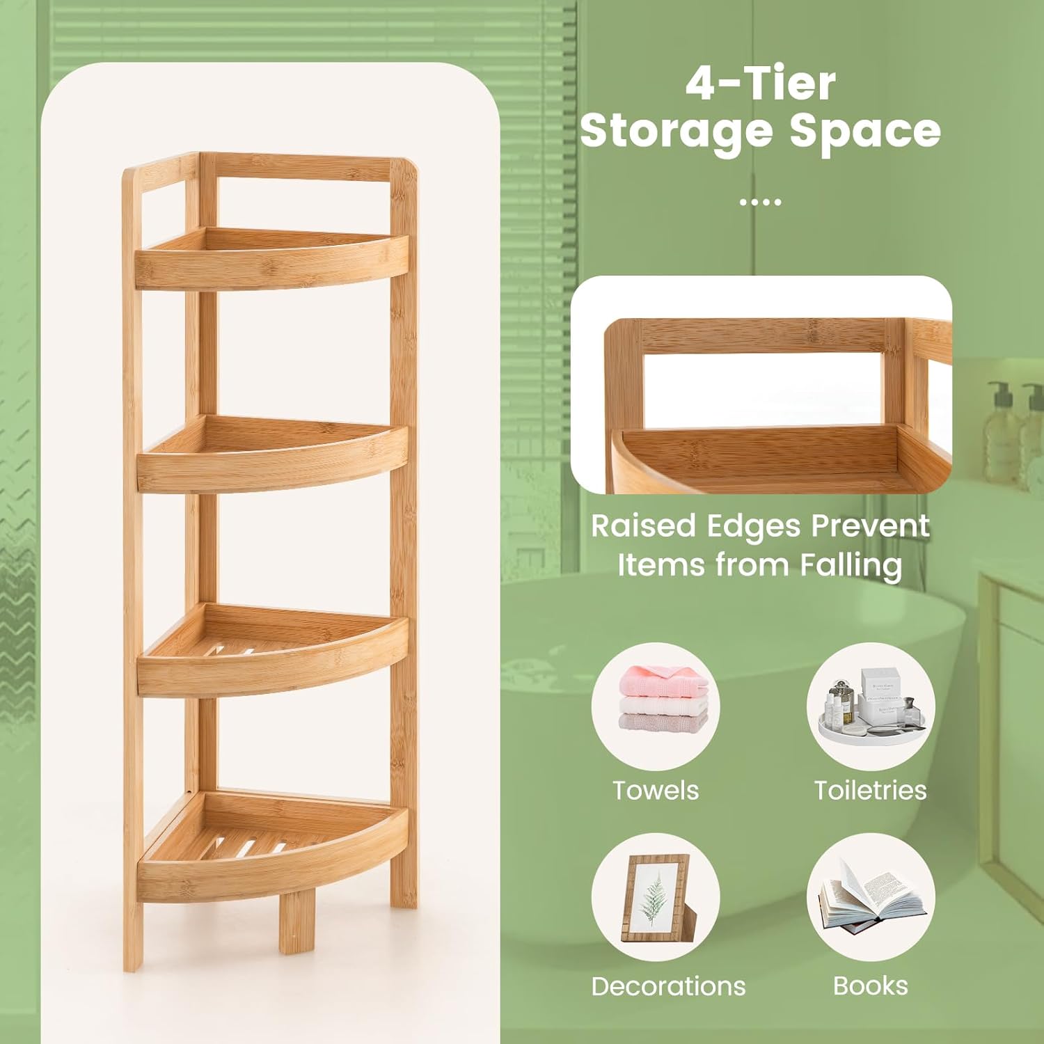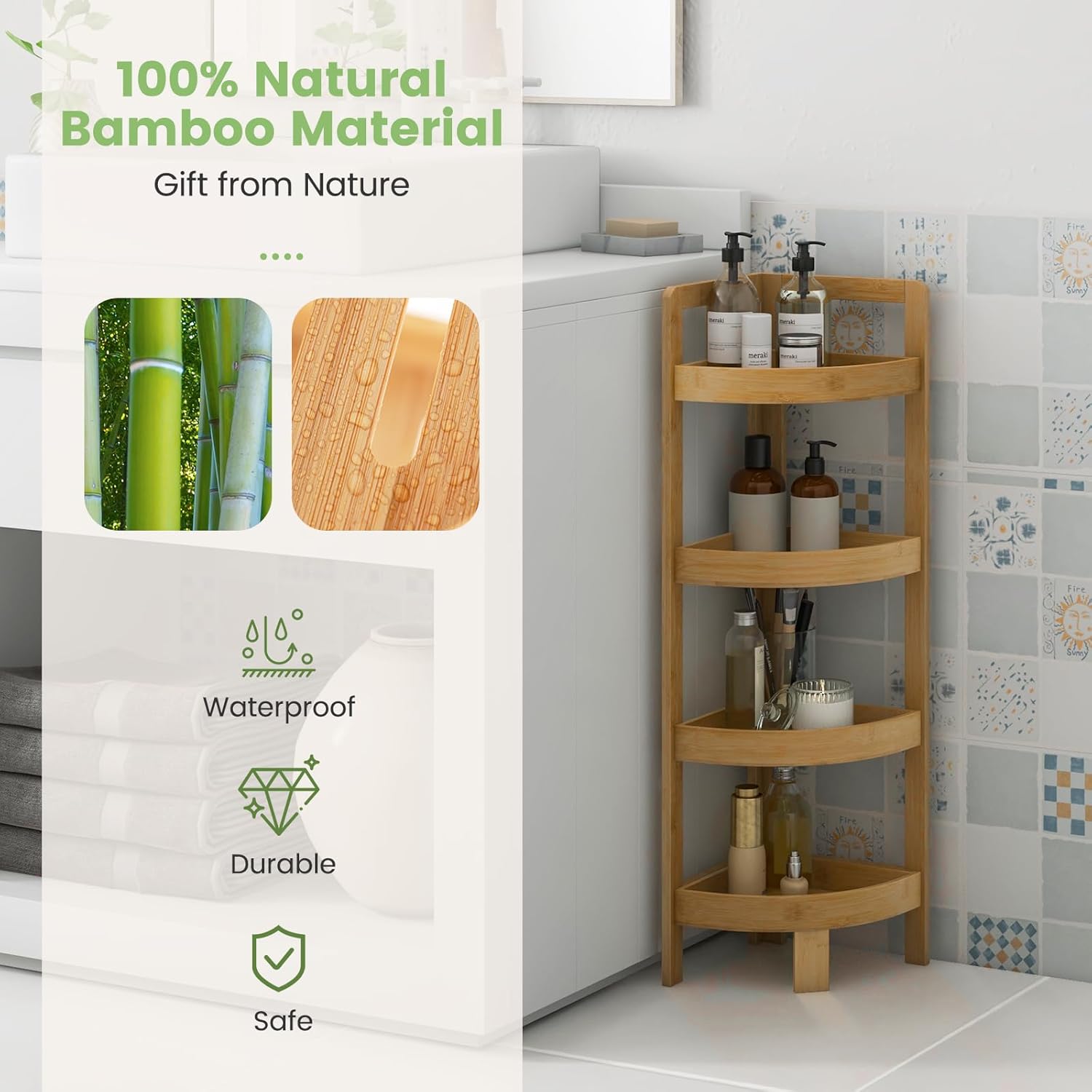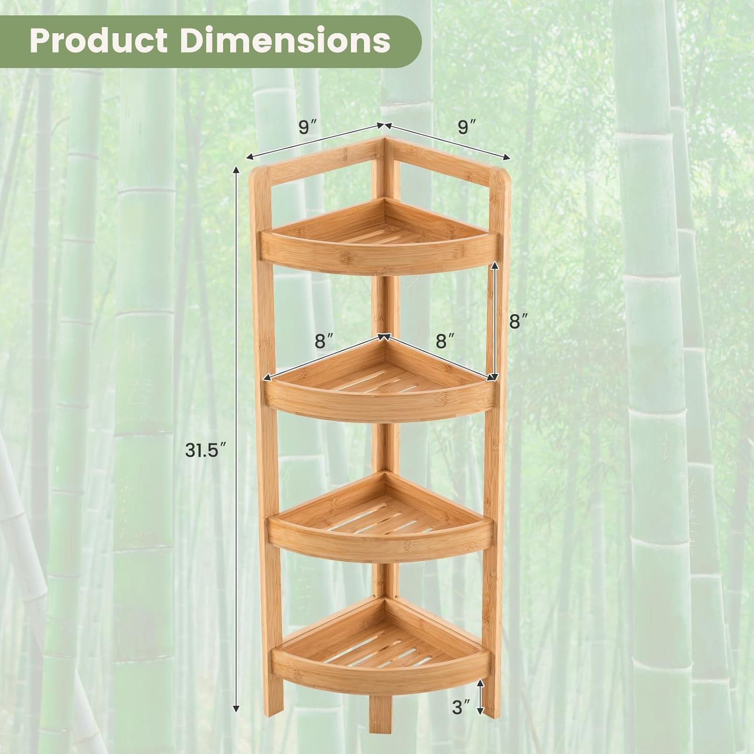 Giantex Bathroom Corner Shelf Stand - 4 Tier Bamboo Corner Stand, 31.5" Corner Storage Shelf, Counter Organizer Rack, Corner Table Bookshelf for Living Room, Balcony, Bedroom, Kitchen, Natural