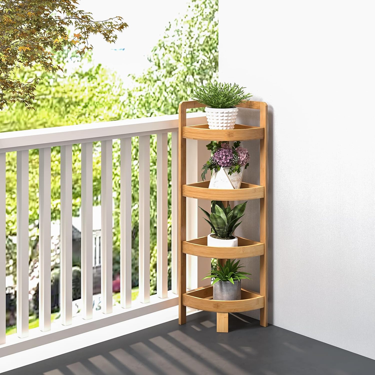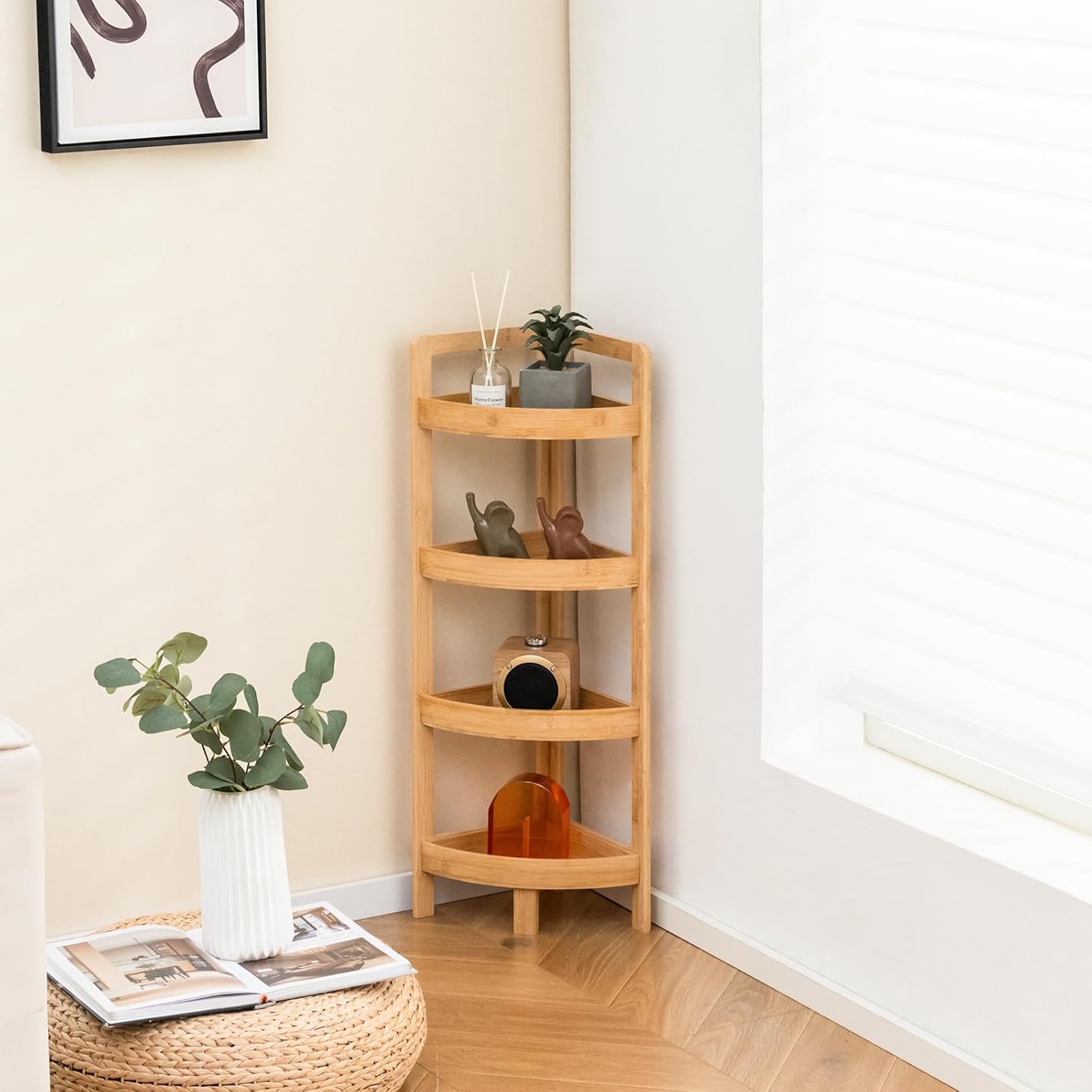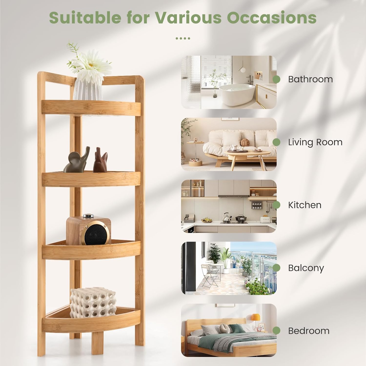 Giantex Bathroom Corner Shelf Stand - 4 Tier Bamboo Corner Stand, 31.5" Corner Storage Shelf, Counter Organizer Rack, Corner Table Bookshelf for Living Room, Balcony, Bedroom, Kitchen, Natural