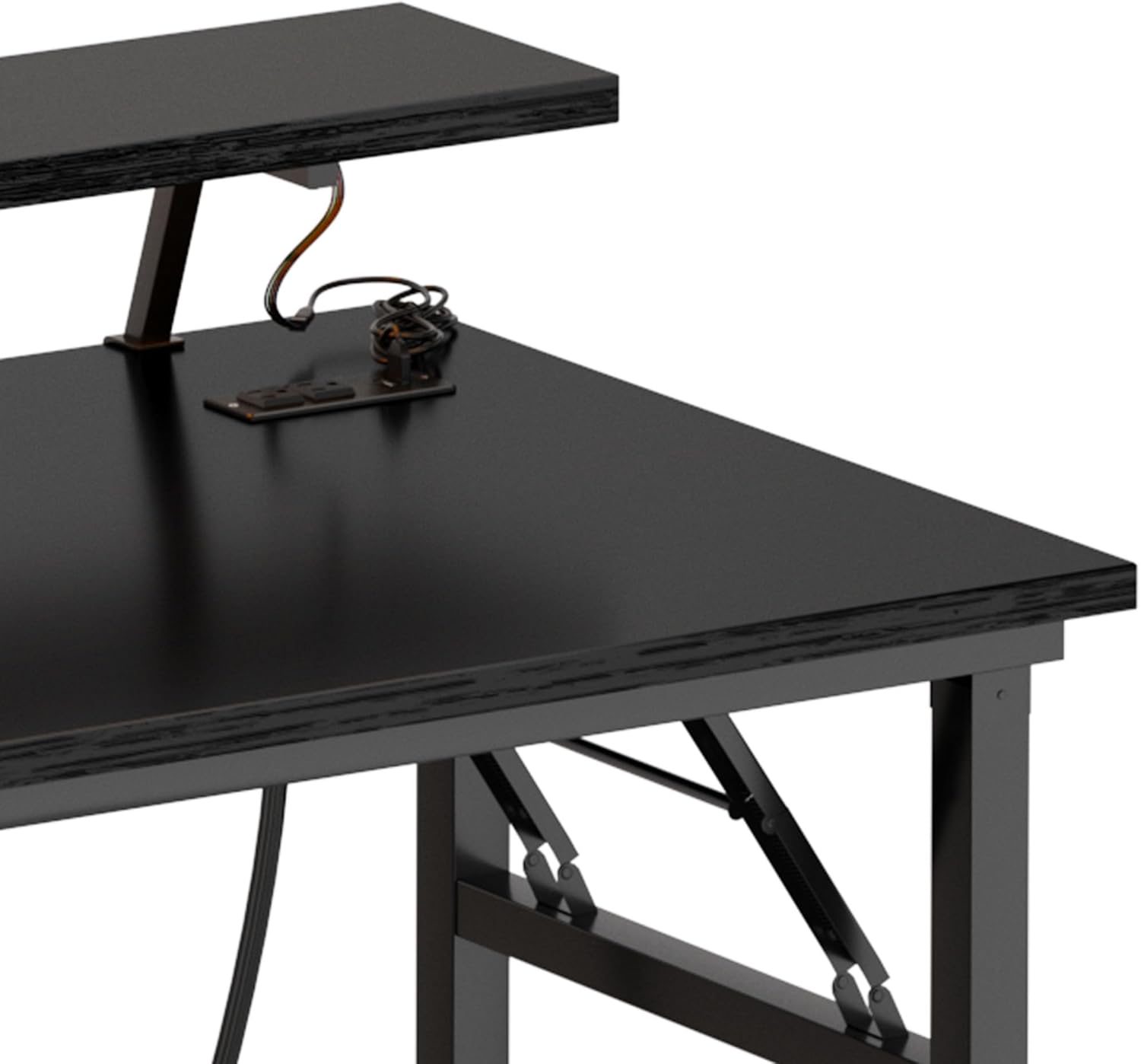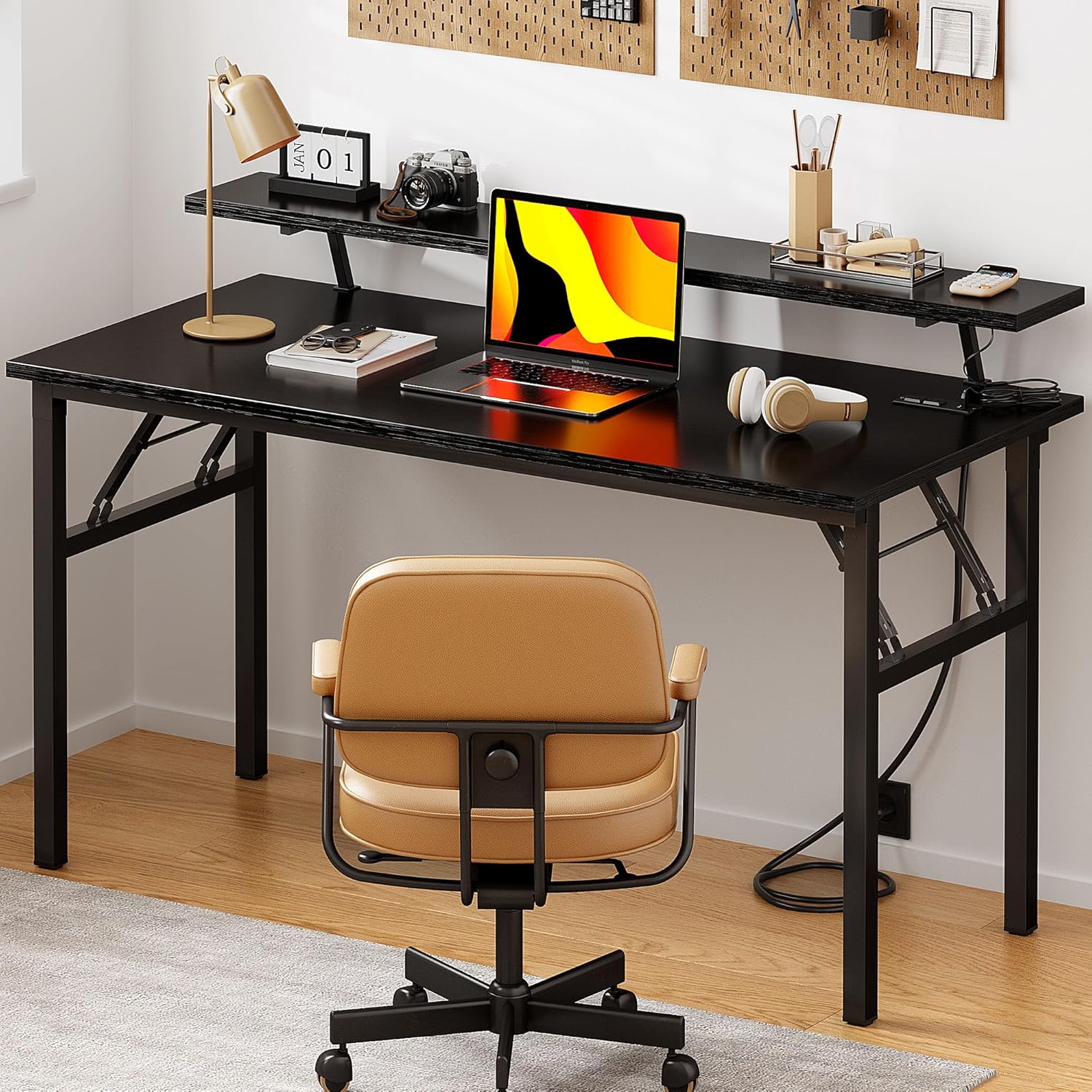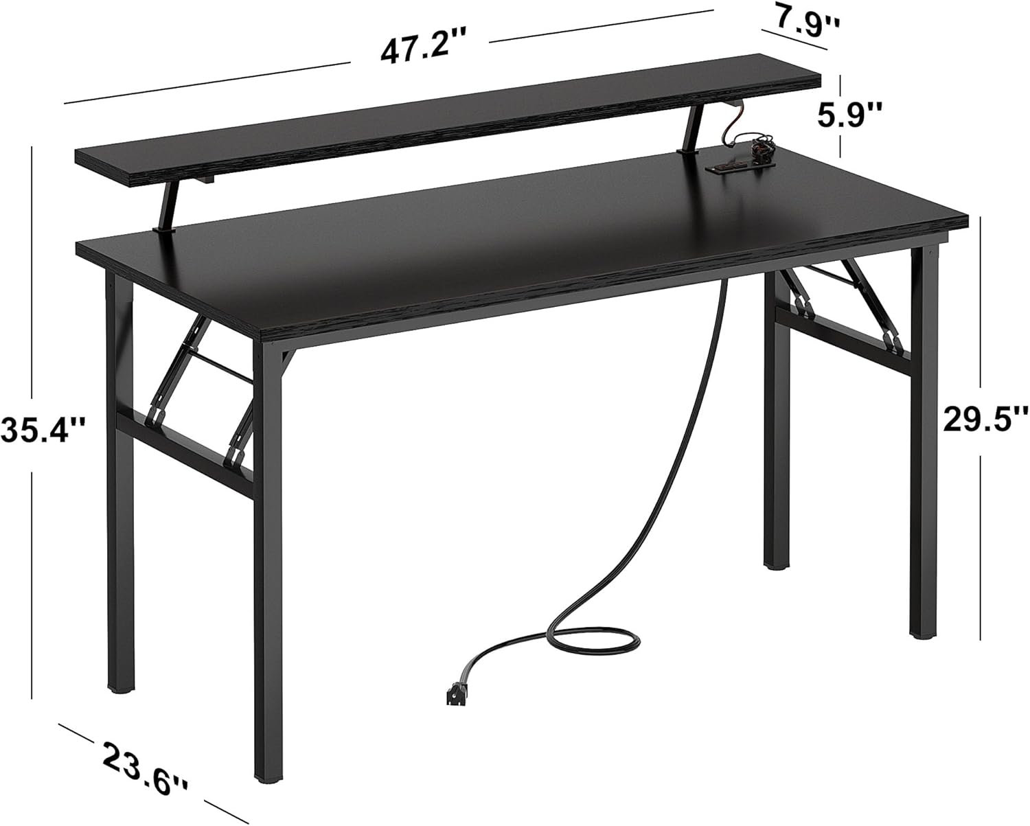 Need 47 Inch Folding Computer Desk with Power Outlets Home Office Table with Monitor Shelf, Cup Holder Gaming Desk with Led Lights & Headphone Holder