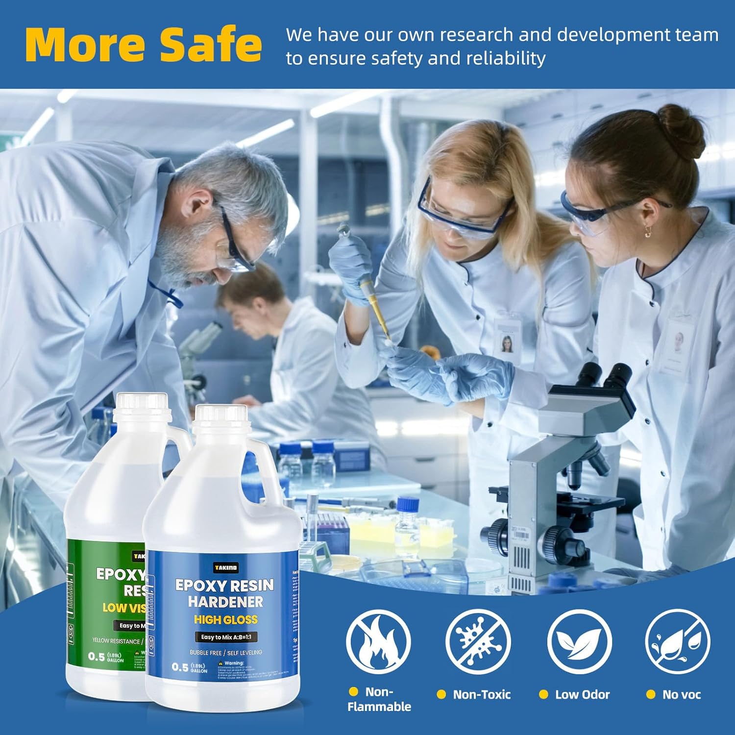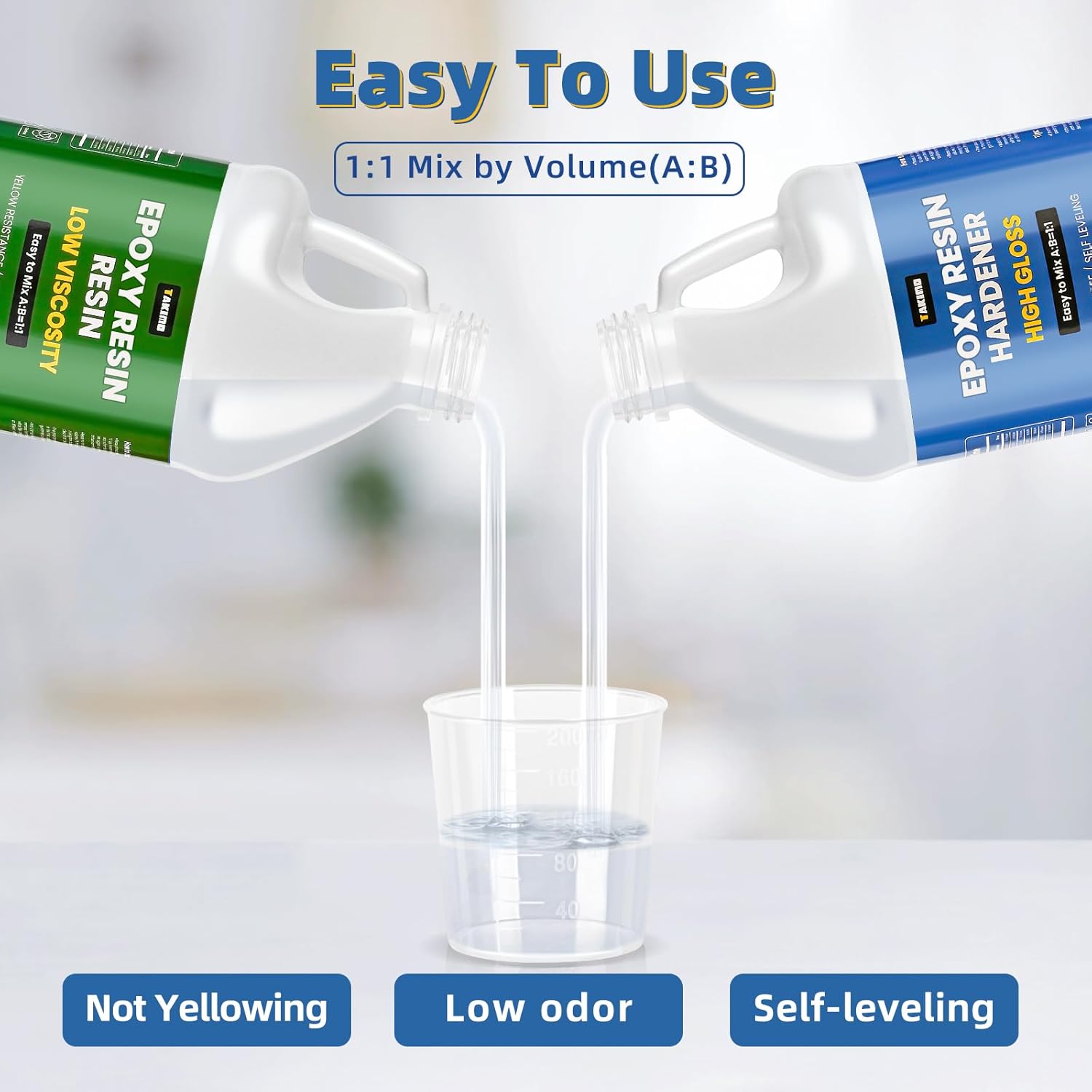 TAKIMO 1 Gallon Crystal Clear Resin Kit,No Bubble & Not Yellowing Epoxy Resin for Coating, Casting, Table Top,DIY, Bar Top, River Tables, Resin Art, Wood with High Gloss Finish