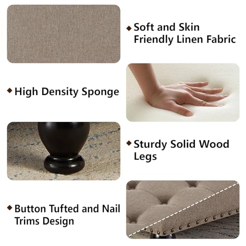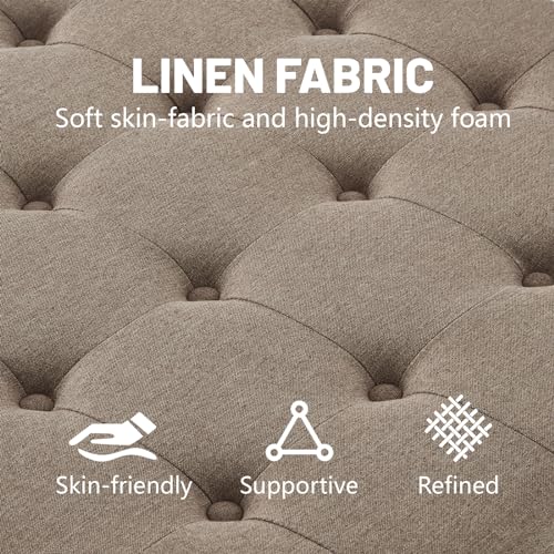 Upholstered Square Ottoman, 30 Inch Linen Fabric Button Tufted Storage Ottoman with Wooden Legs Coffee Table with Nail Trims 4 in 1 Storage Chest Footrest Padded Seat End Table, Khaki