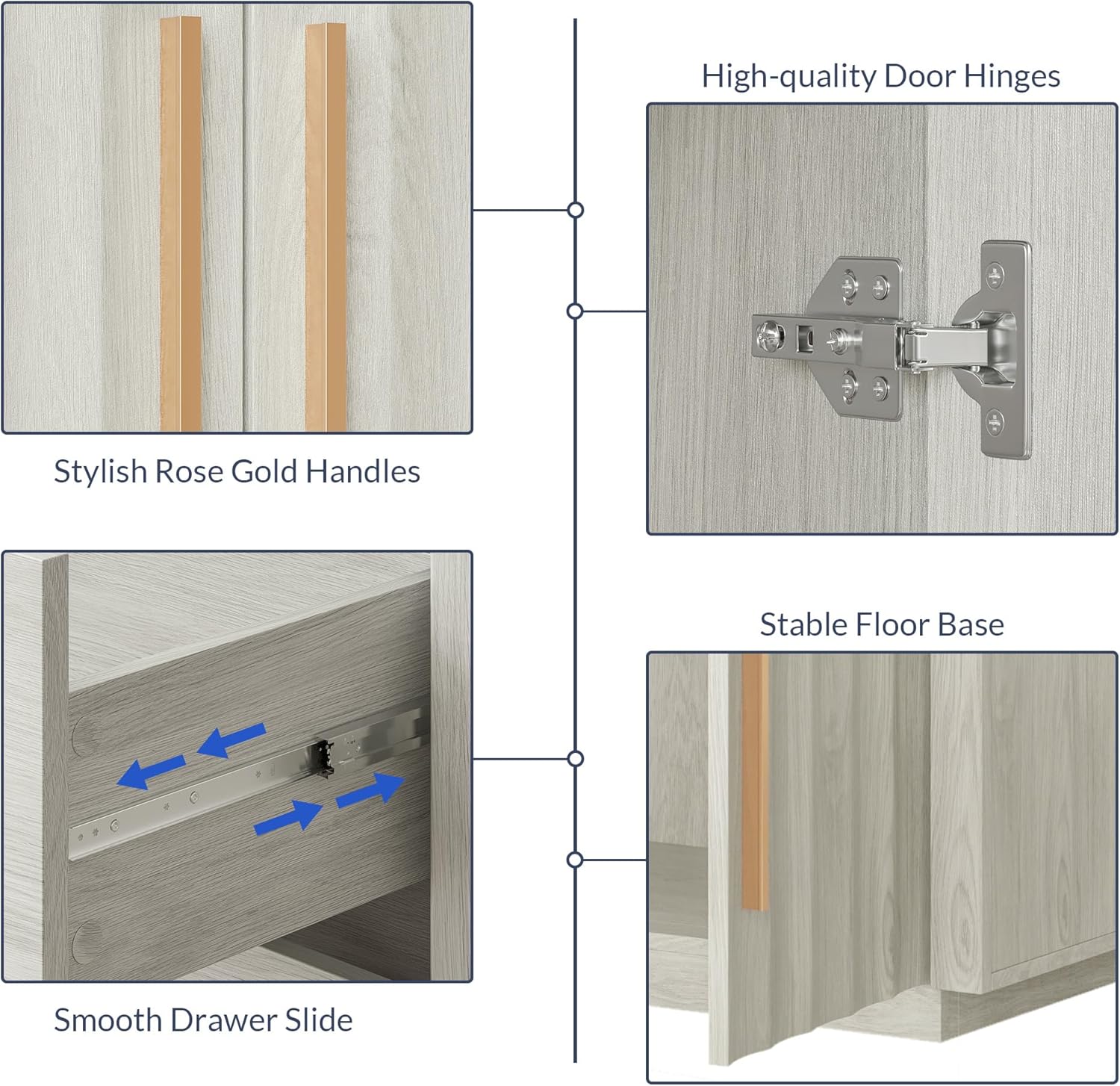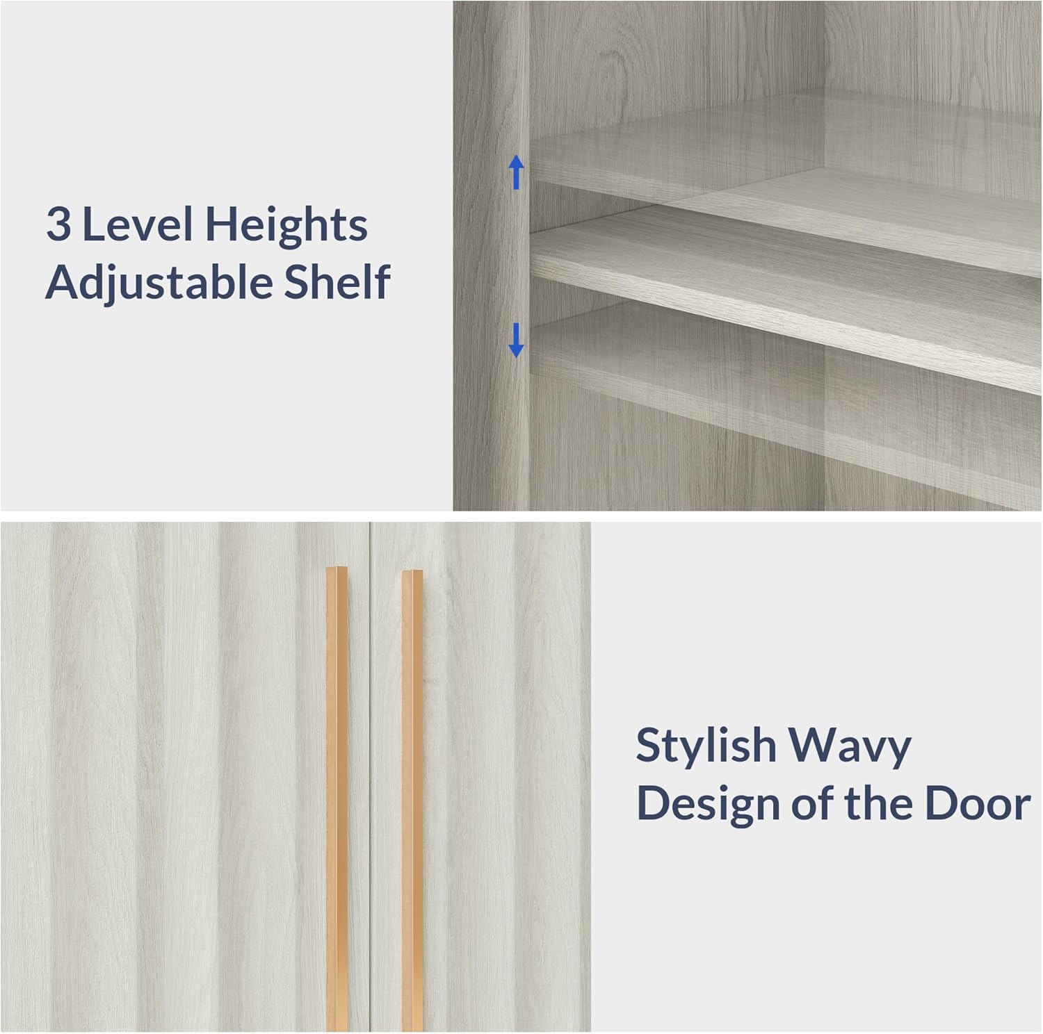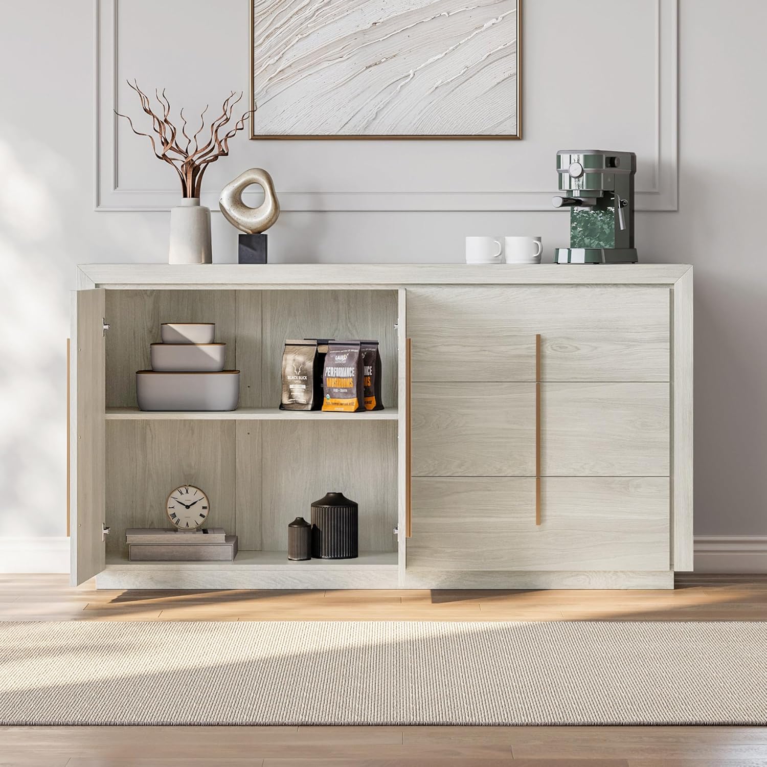 BELLEZE 64.5” Sideboard Buffet Cabinet, Modern Fluted Door Console Table with 3 Drawers and Adjustable Shelves, Accent Storage Cabinet for Entryway, Living Room & Dining Room - White Sand