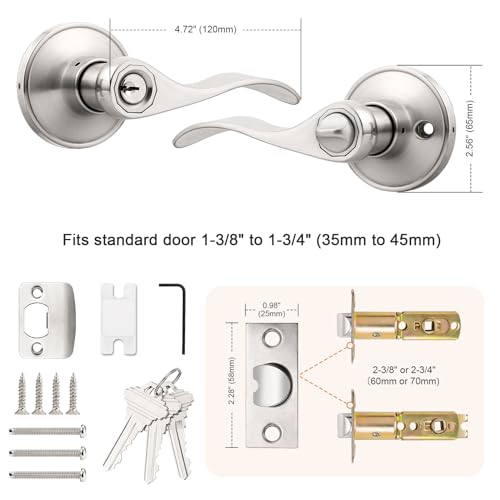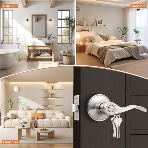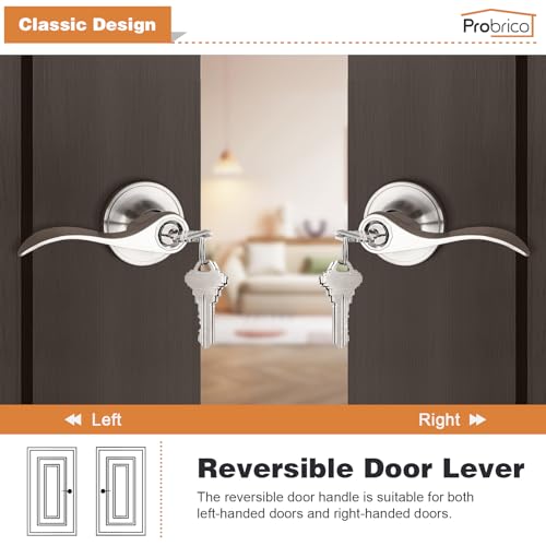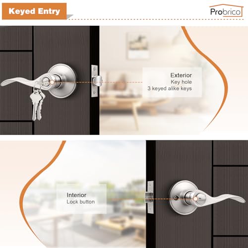 Probrico 10 Pack Keyed Alike Entry Levers, Wave Style Satin Nickel Entry Locksets, Exterior Interior Door Levers with Lock and Same Keys(for Bedroom or Office)
