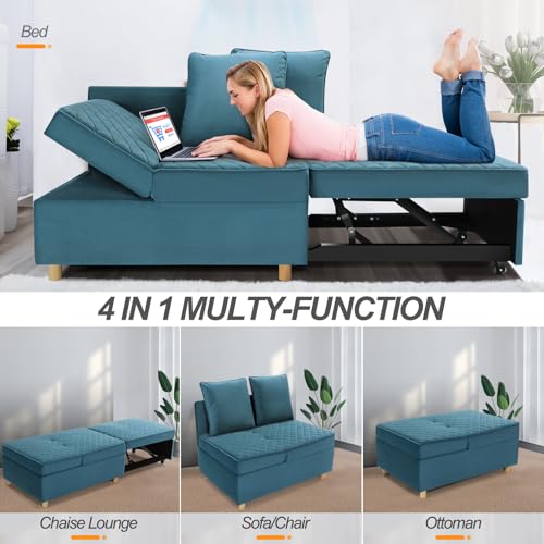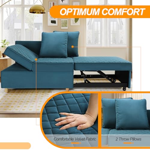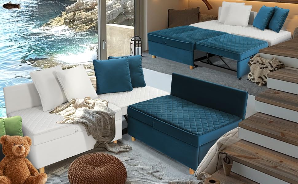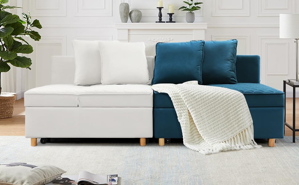 71" Convertible Folding Futon Fouch Bed, Velvet Comfy Couch, Loveseat, Sofas para Sala with Removable Armrests, Small Couch for Bedroom, Office, White