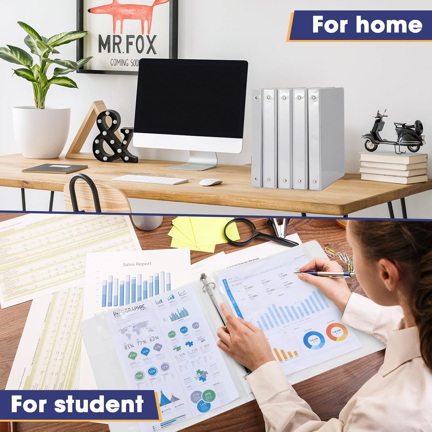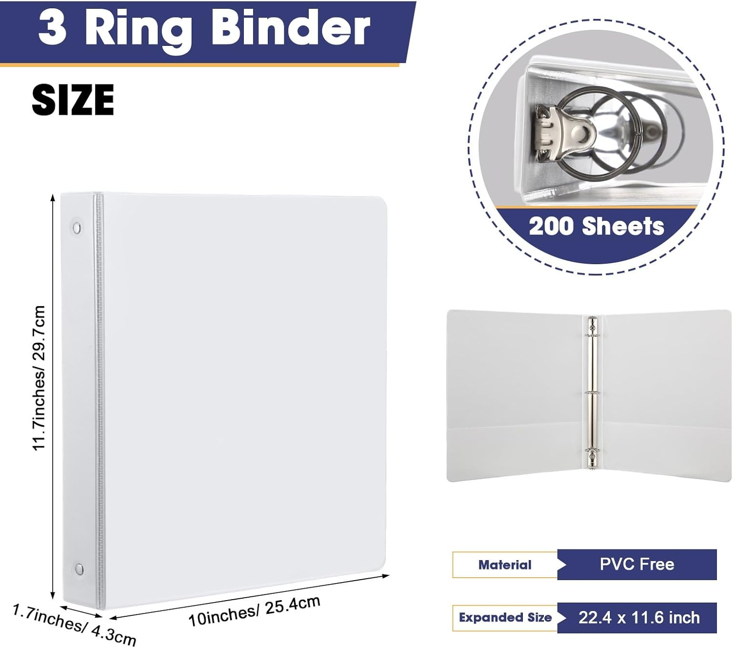 Yeaqee 10 Pcs 1 Inch 3 Ring Binders with 2 Interior Pockets, Round Rings, Holds US Letter Size 8.5 x 11 Inch 200 Sheets, Light, White, Versatile Binders for School, Office, Home Use