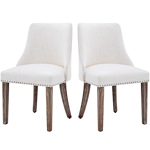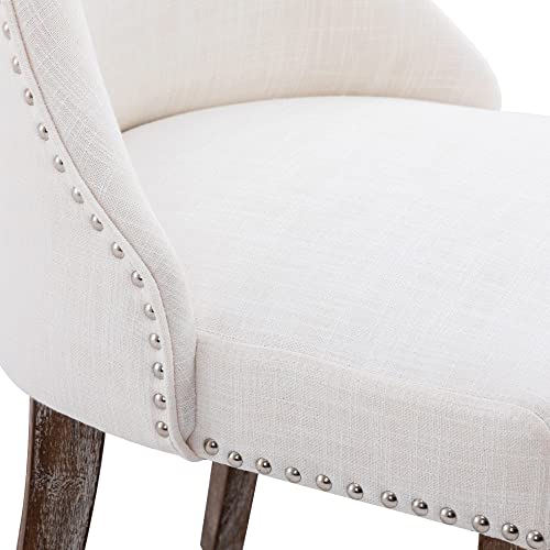 Kmax Fabric Dining Chairs Set of 4 Upholstered Side Chairs Farmhouse Accent Chairs with Nailhead Wood Legs for Dining Room Guest Room Restaurant, Cream