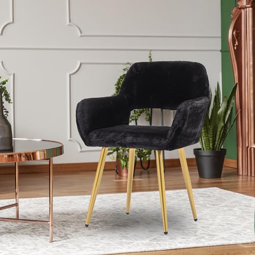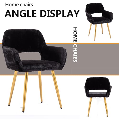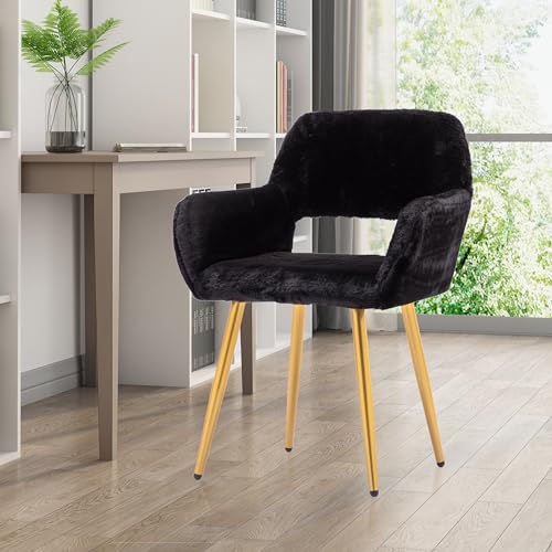 HomVent Faux Fur Office Desk Chair,Furry Cute Desk Chair with Arm, Comfy Faux Fur Makeup Vanity Chair with Back & Wood Leg,Women Girls Desk Chairs for Makeup Vanity Room Bedroom Study Living Room Grey