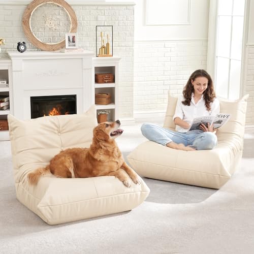 Bean Bag Chair, Giant Bean Bag Sofa, Memory Foam Bean Bag Chairs for Adults, Bean Bag Sofa Sack Faux Leather Fireside Bean Bag for Living Room Bedroom Dorm Office (Khaki)