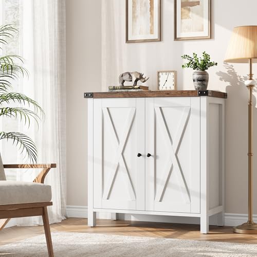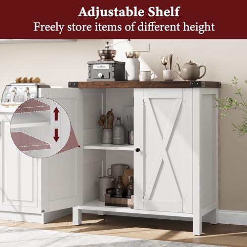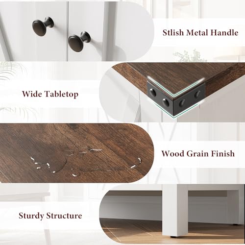 IDEALHOUSE Buffet Cabinet Farmhouse Storage Cabinet with Doors and Shelves, Buffets and Sideboards Entryway Cabinet with Storage Accent Console Cabinet for Living Room, Dining Room (White+Brown)