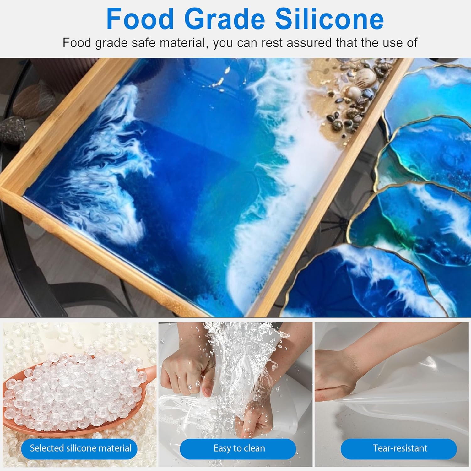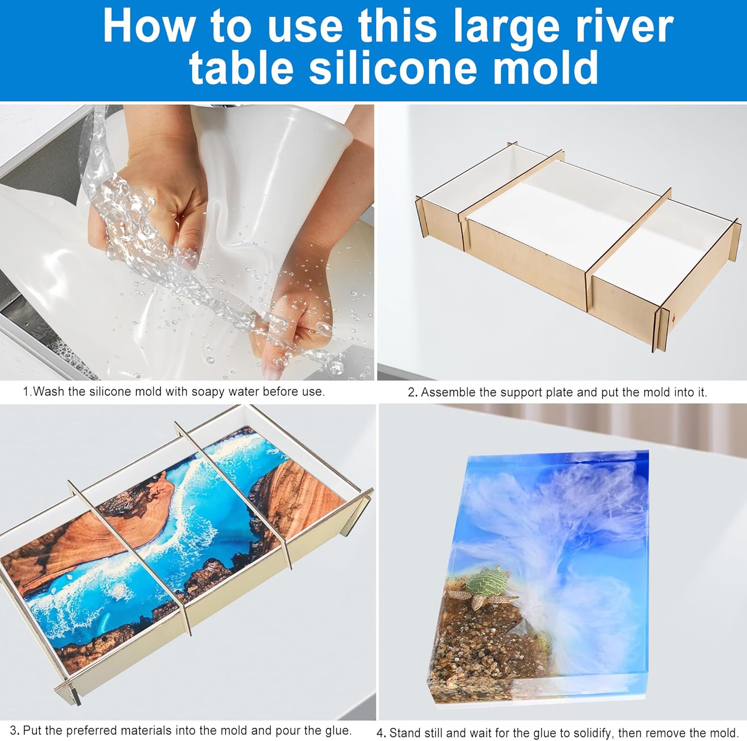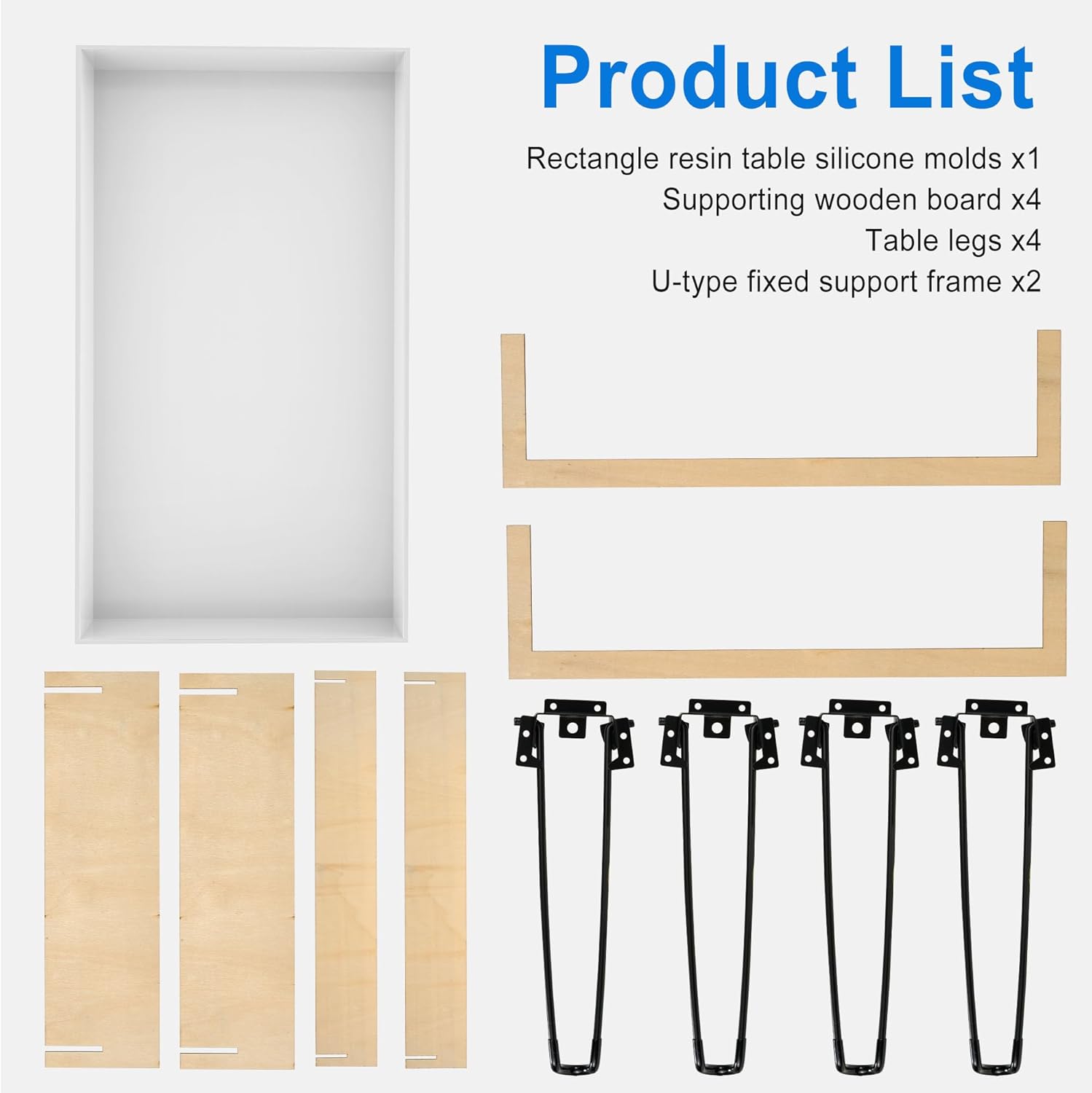Large Rectangle Resin Table Molds 23.7X11.81 inch Epoxy Resin Table Mold Silicone Molds for River Coffee Table, with 4 Table Support Legs, Reusable DIY Epoxy Table Mold