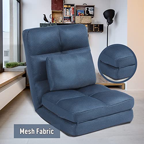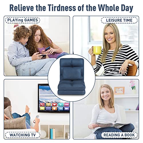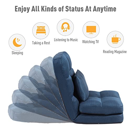 Indoor Chaise Lounge Sofa, Floor Chair with Back Support for Adults, 14 Angle Adjustment Recliner Chair, Folding Floor Lounger with Pillow 8823(Brown-1)