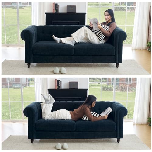 81" Chesterfield Sofa with Tufted Back,3 Seater Sofa Couch,Comfortable Upholstered Couch,Modern Fabric Sofa for Apartment Living Room Office,Lounge,Chenille,Grey