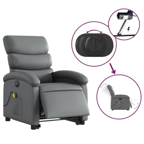 Electric Stand up Massage Recliner Chair Gray Faux Leather,Electric Lift Recliner Massage Chair with Adjustable Positions and , Massage for the Elderly Armchairs Recliner Sleeper Chairs for Living Roo