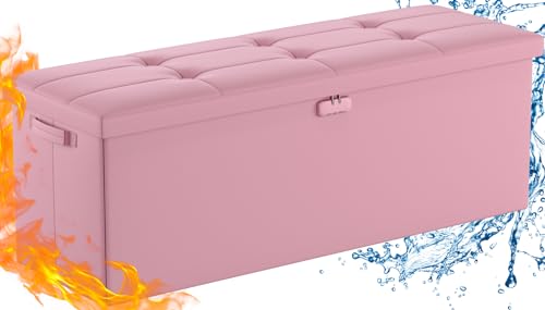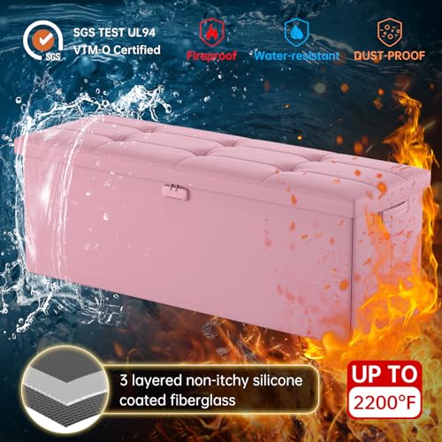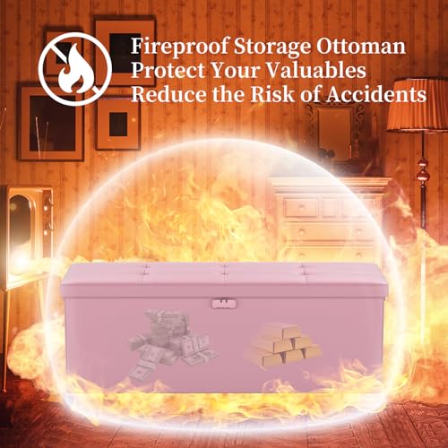 DocSafe Storage Ottoman Bench with Lock,Fireproof Folding Storage Bench Foot Rest Stool Storage Chest with Storage Safe for Important Documents,Waterproof Leather 30 Inches Ottoman with Handles,Gray