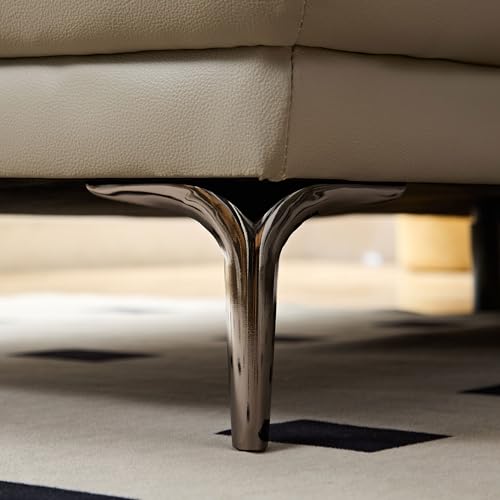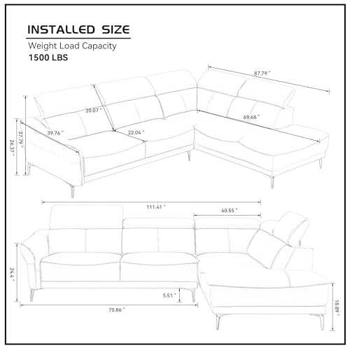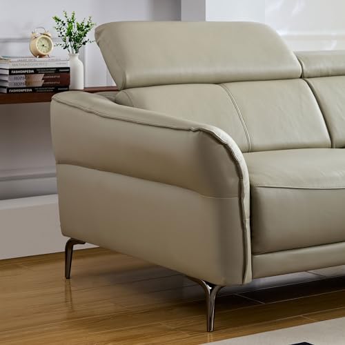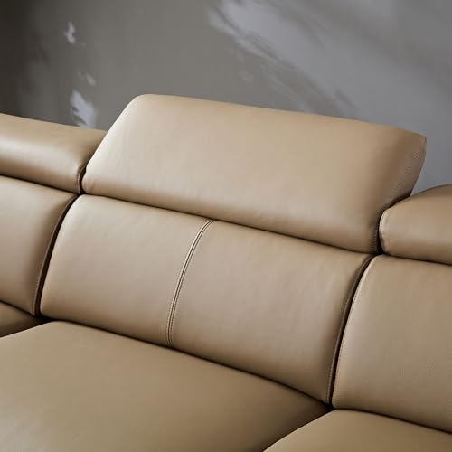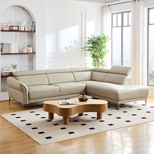 L Shaped Leather Couch - Genuine Leather Sectional with 5 Positions Adjustable Headrests and Right-Facing Chaise, Minimalist Couch with Metal Legs, Oversized Sectional for Living Room (Brown)