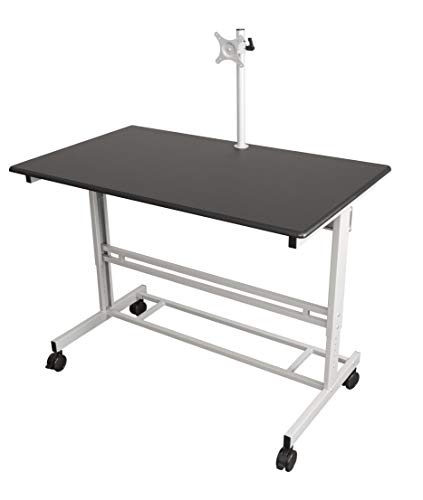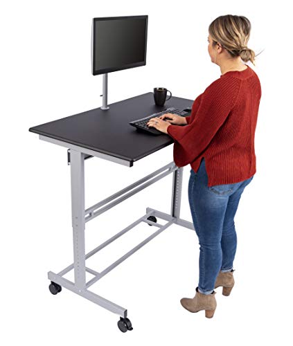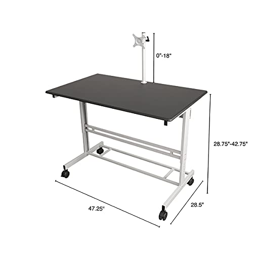 Stand Up Desk Store Rolling Adjustable Height Mobile Standing Desk with Monitor Mount (Silver Frame/Matte Black Top, 48" Wide)