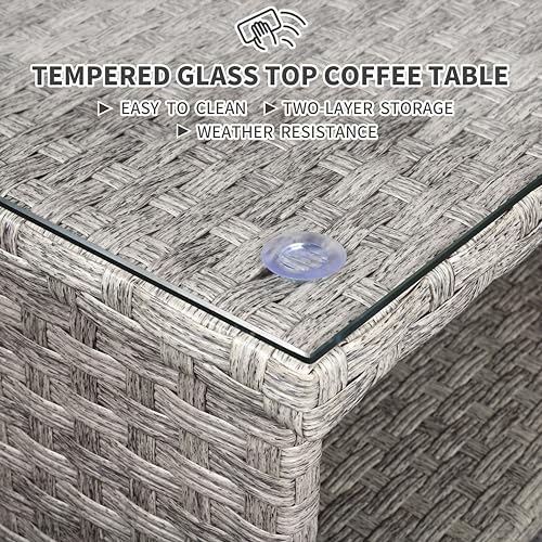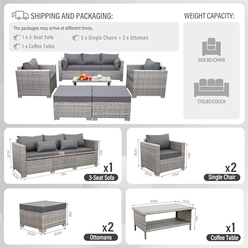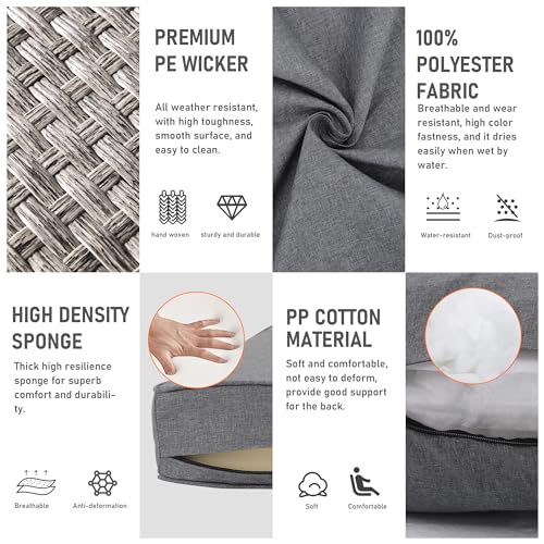 WAROOM Patio Furniture Set 6 Piece Outdoor Patio Set Grey Wicker Balcony Furniture Conversation Sets PE Rattan Couch Sofa with Fire Pit Table, Grey Cushion