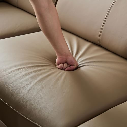 Sectional Cloud 5 seat Couches L-Shaped for Living Room,Large Modern Design Genuine Leather Deep Luxury Adjustable Headrests 2 PC Couch Sofa Furniture Set Minimalist Modular Sleeper Sofa,Brown