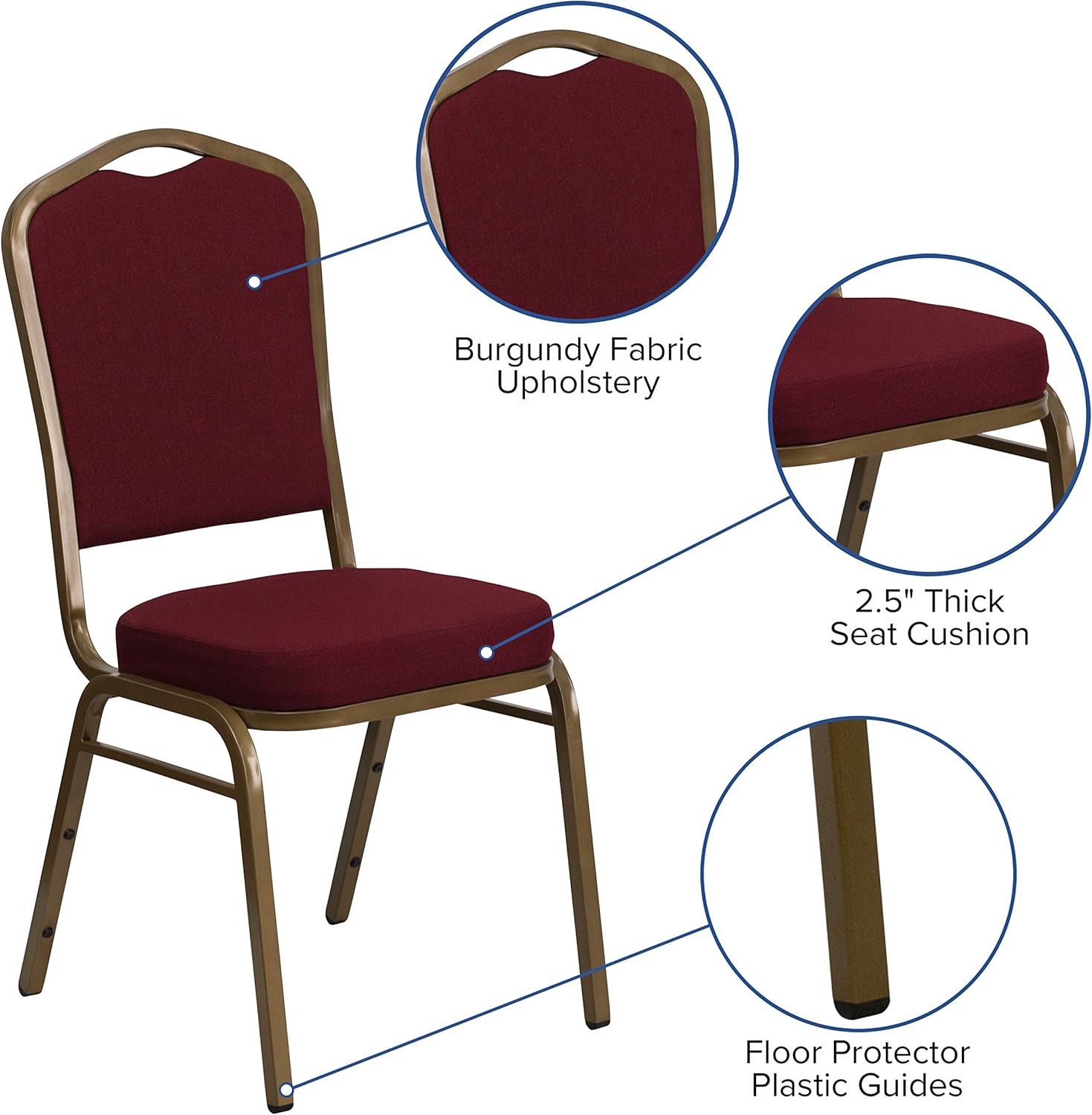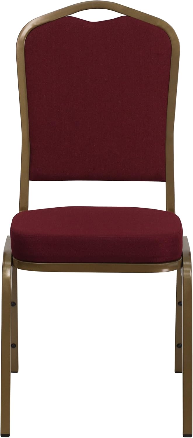 Flash Furniture HERCULES Series Crown Back Stacking Banquet Chair in Burgundy Fabric - Gold Frame