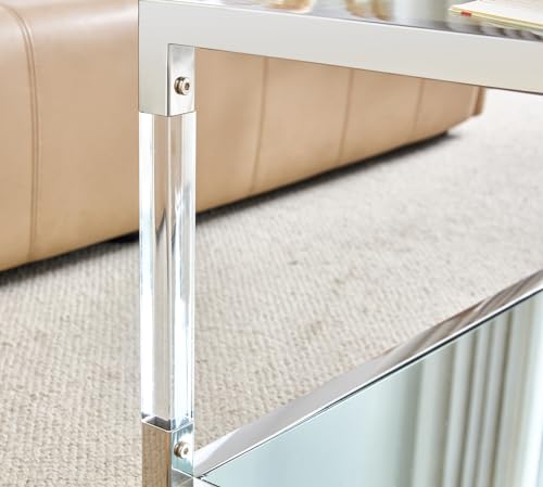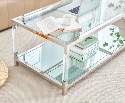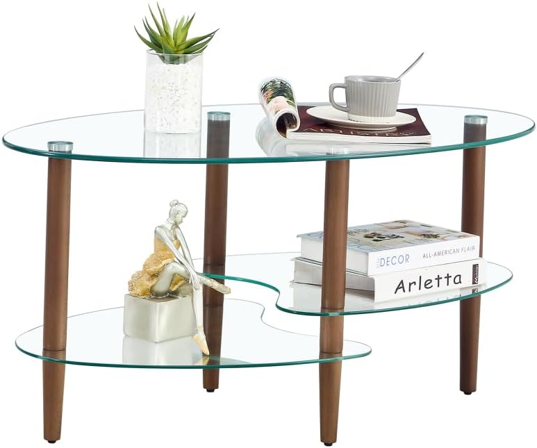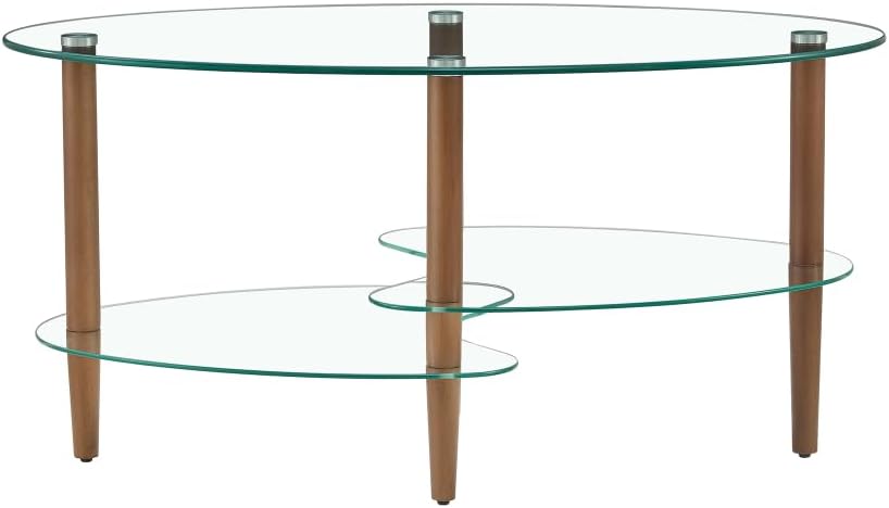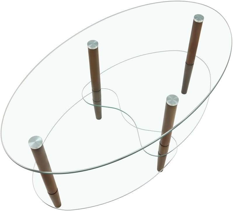 Transparent Oval Glass Coffee Table, Modern Table in Living Room Oak Wood Leg Tea Table 3-Layer Glass Table Brown W24194362