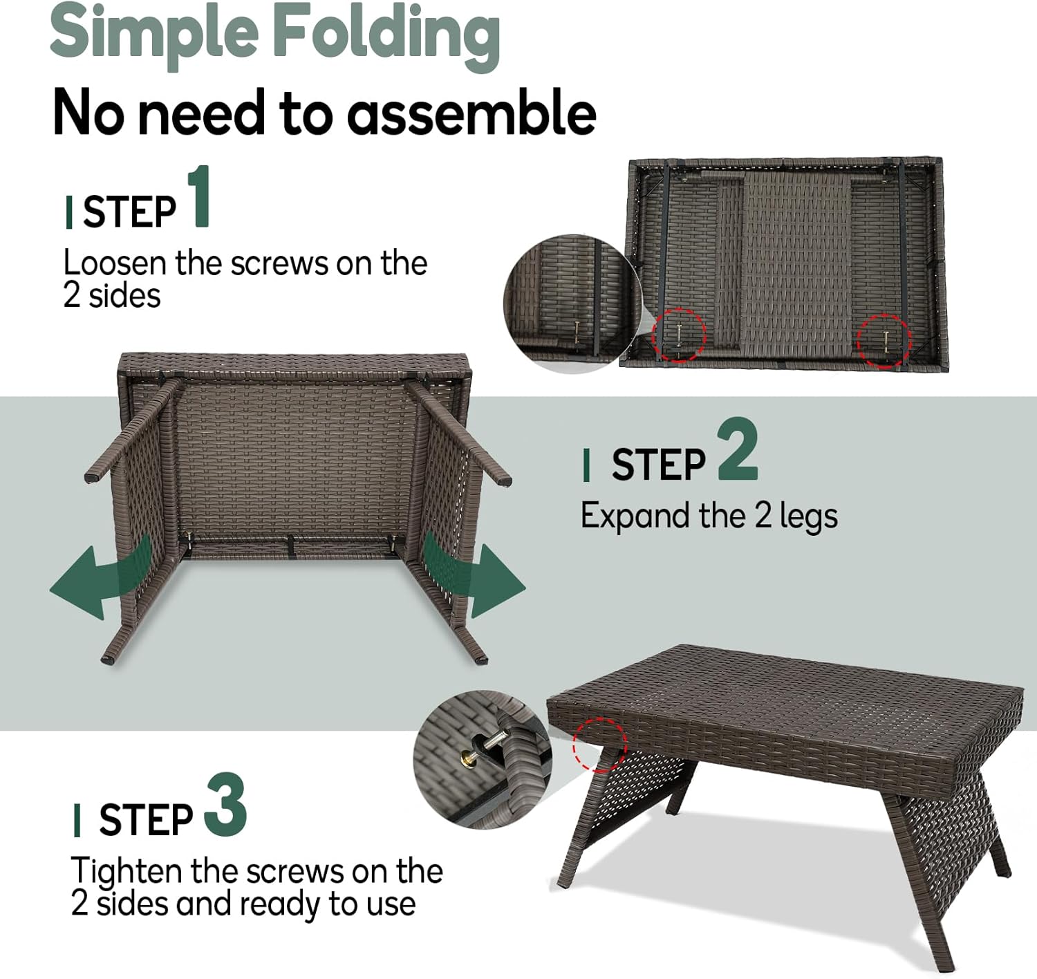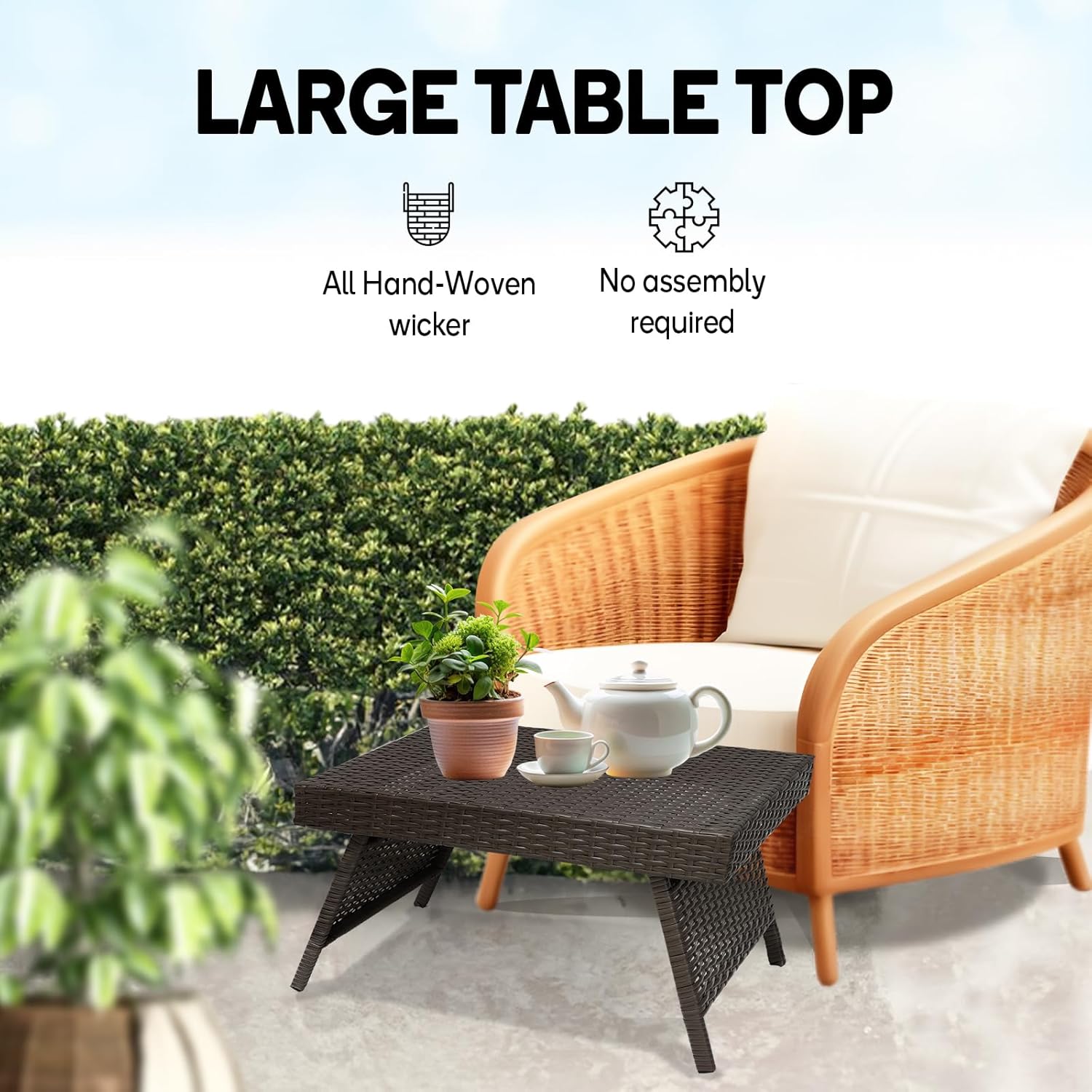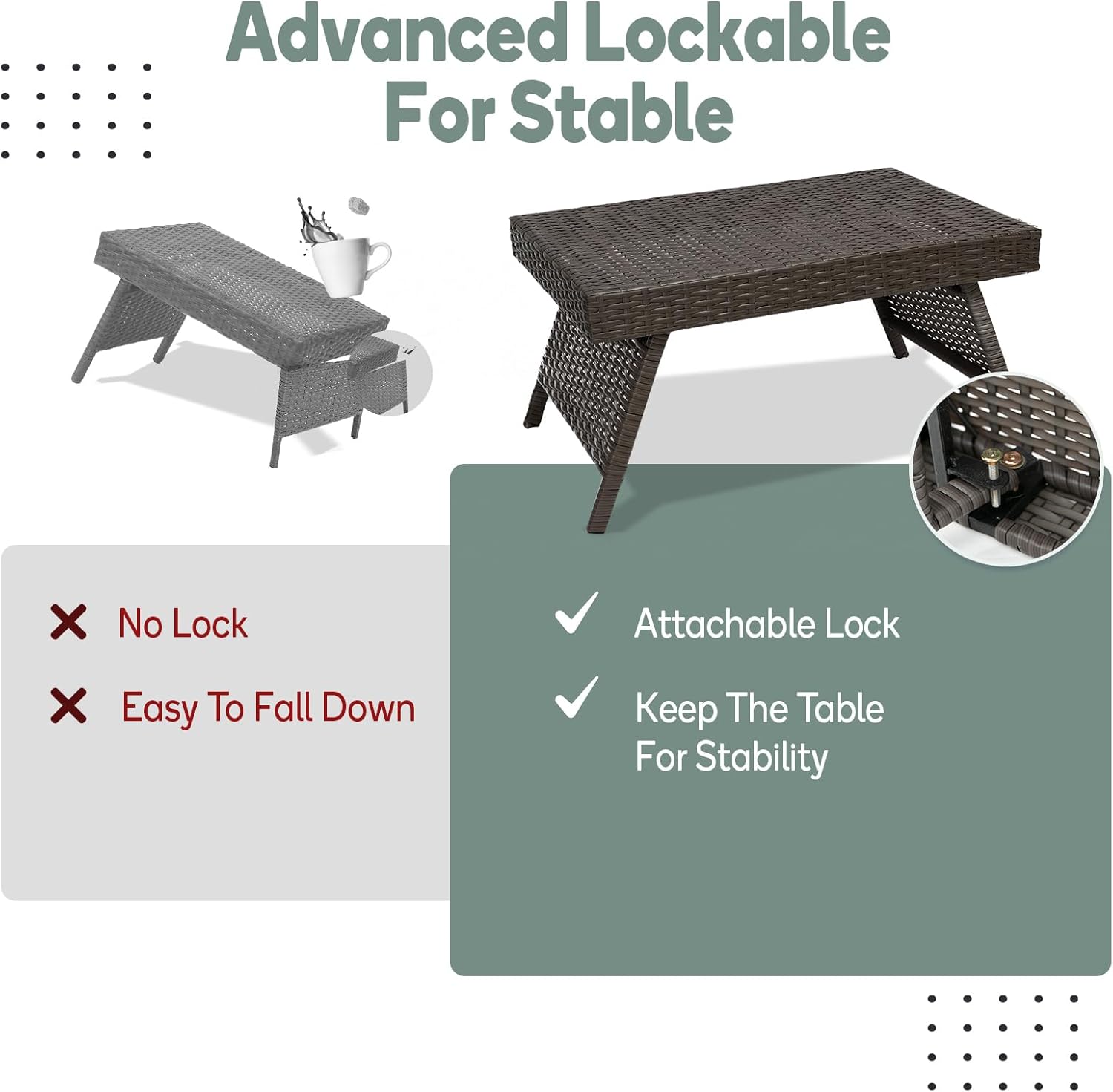Premium Outdoor Wicker Table with 2000Hrs UV Resistant & Upgraded Lock, Ideal for Patio, Poolside, Used with Chaise Lounges Chair and Indoor Furniture, Used As Dining Or End Table