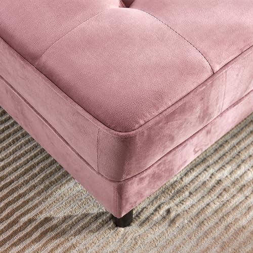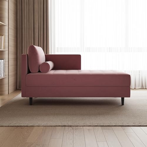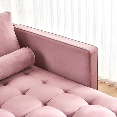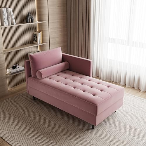 64'' Velvet Chaise Lounge Indoor, Modern Longue Chair Indoor Chaise Longue with Armrest & Pillow, Button Tufted Lounge Sofa for Small Space, Living Room, Bedroom, Apartment, Pink