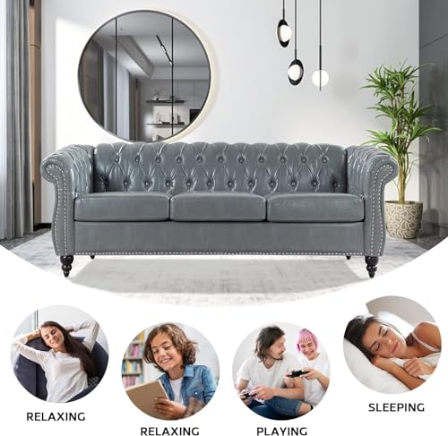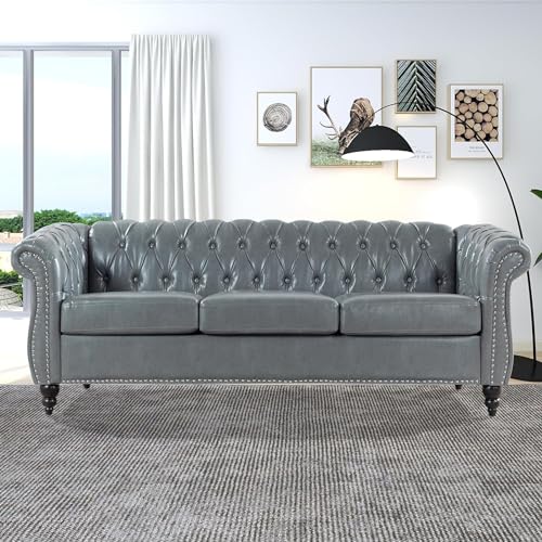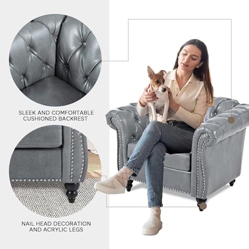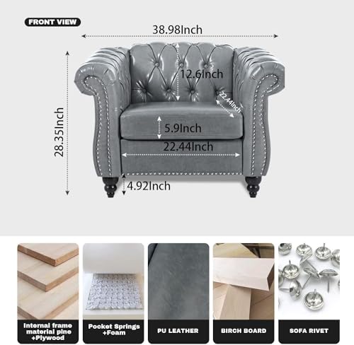 Brown Chesterfield Sofa2 Piece Set, Modern Faux Leather 3 Seater Couches and Sofa Chairs, Upholstered Tufted Button,Scroll Arms and Nailhead Trim, Sectional Sofa Set for Living Room Office Bedroom