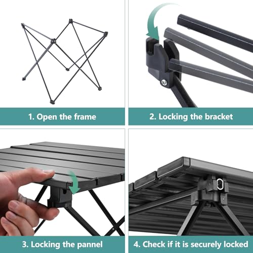 SHELTER Camping Table, Compact Folding Camp Table, Foldable Camping Tables with Carry Bag, Portable Aluminum Table for Hiking, Picnic, BBQ, Travel, Beach Table