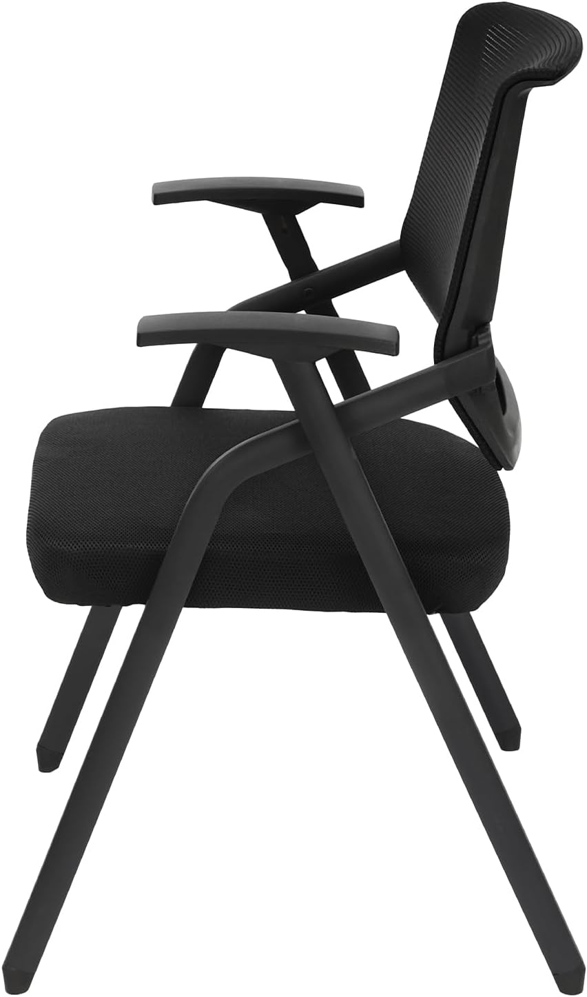 2 Pack Conference Room Chairs, Stackable Foldable Ergonomic Reception Office Chair with Lumbar Support, Armrest,Mesh Bouncing Back,for Guest,Meetings,Waiting Room