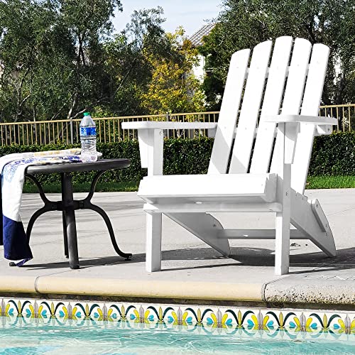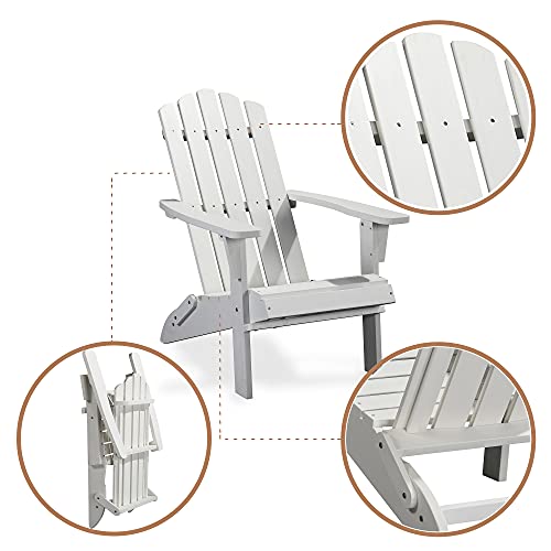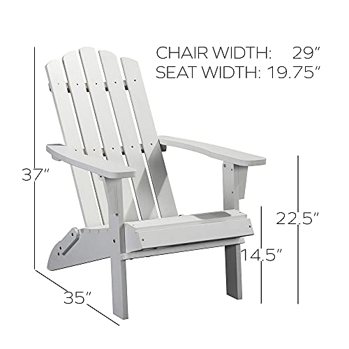Folding Adirondack Chair, Premium Weather Resistant Poly Lumber, Outdoor Patio Furniture, Up to 300 lbs, Plastic Adirondack Chairs for Patio Garden Fire Pit (Classic, White)