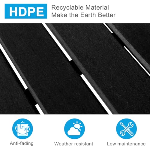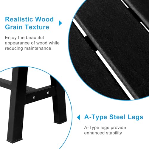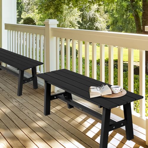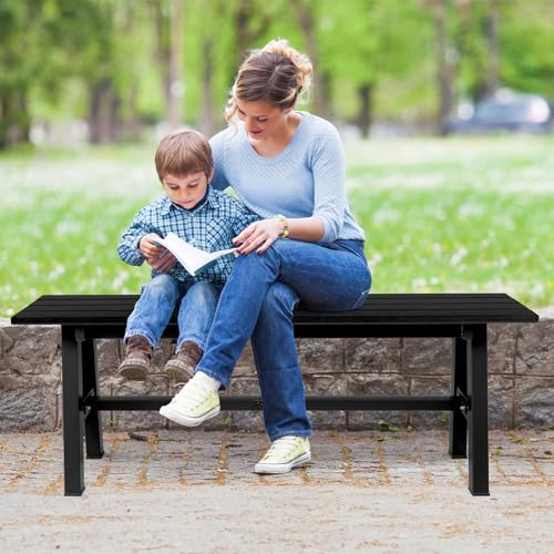 VINGLI 47” Outdoor Bench HDPE Patio Garden Bench w/Metal Legs, Poly Lumber Outdoor Backless Bench, 660 LBS Capacity (Black)