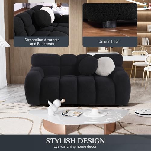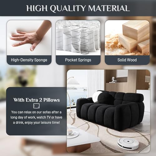 Boucle Cloud Couch for Living Room, 86" Modern Upholstered Couch, Tufted Casual Sofa with 2 Pillows, Deep Seat Couch Sofas for Office, Apartment, Beige