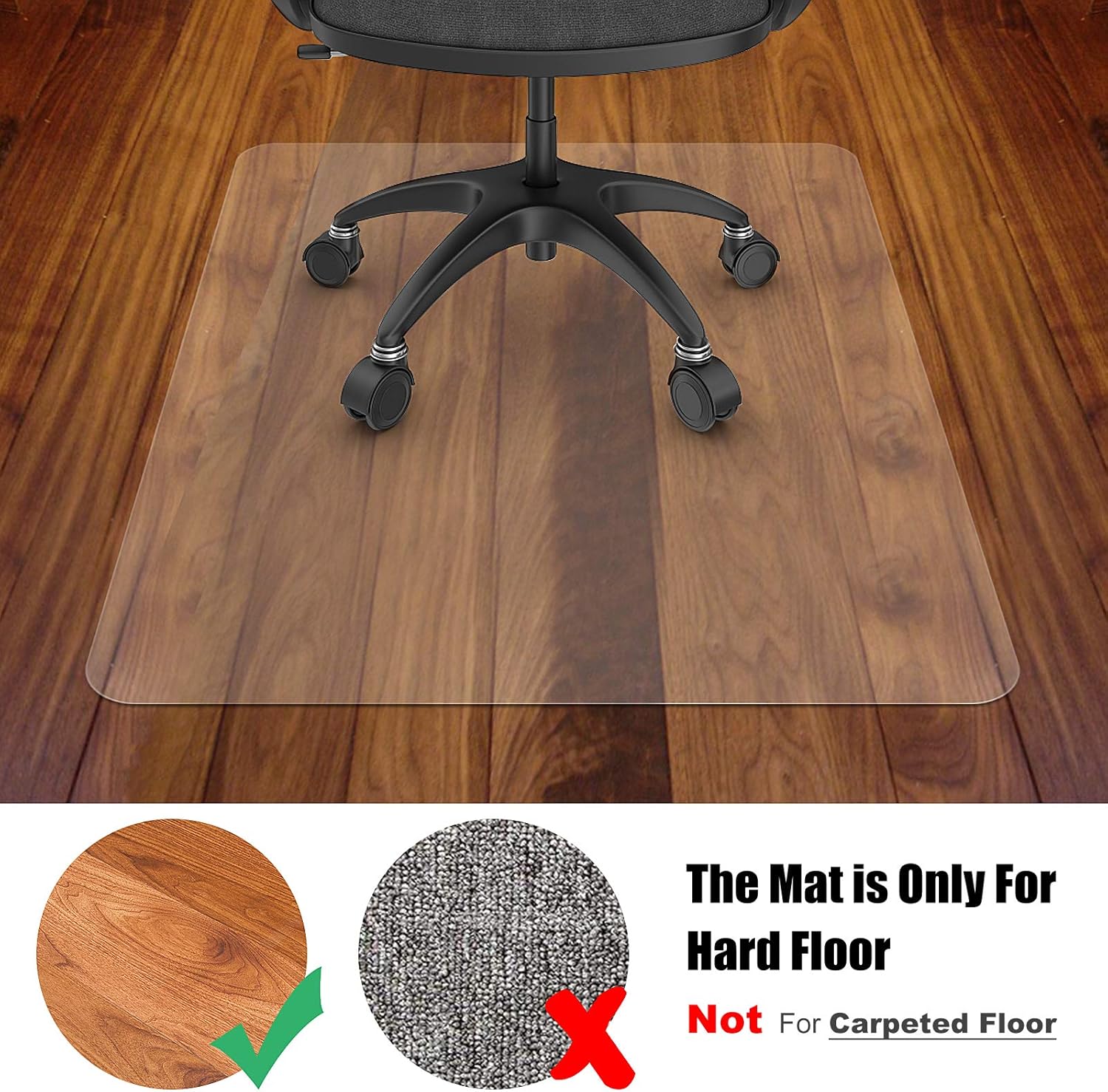 Azadx Office Chair Mat for Hardwood Floor, 8'×10' Clear Desk Chair Mat for Hardwood Floor Large Protector Floor Mat for Dining Room, Easy Glide Rolling Plastic Floor Mat, Chair Mat for Living Room