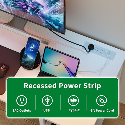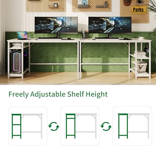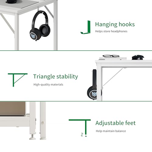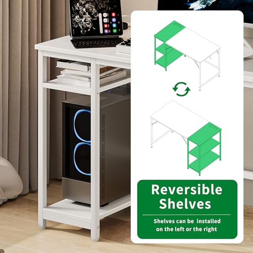 Computer Desk, 48 inches Desk with 2 Shelves, Home Office Desk with USB/Type-C Charging Ports & Power Outlets, Study Table for Adults, White