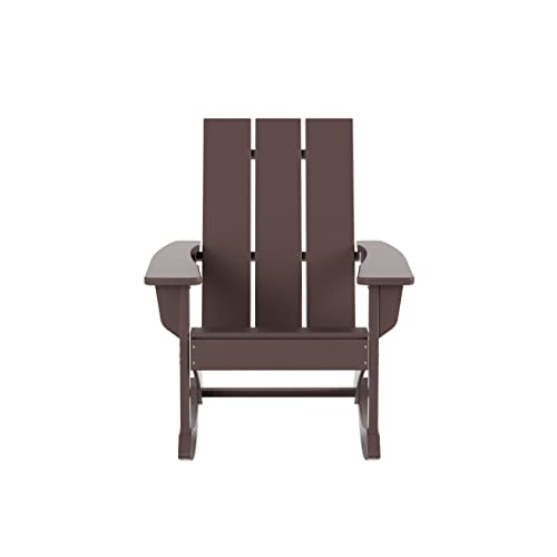 WestinTrends Ashore 2 Piece Patio Rocking Chair Set, All Weather Poly Lumber Adirondack Rocker Deck Porch Patio Chair with Large Side Table, Dark Green