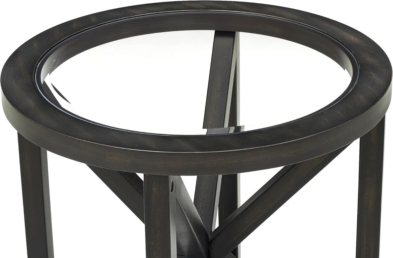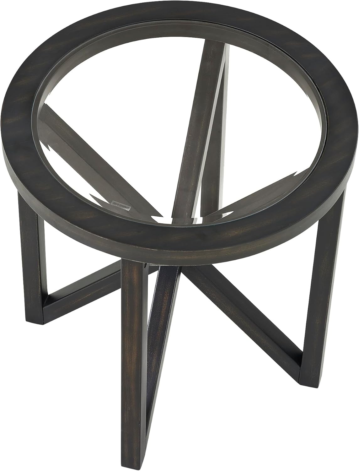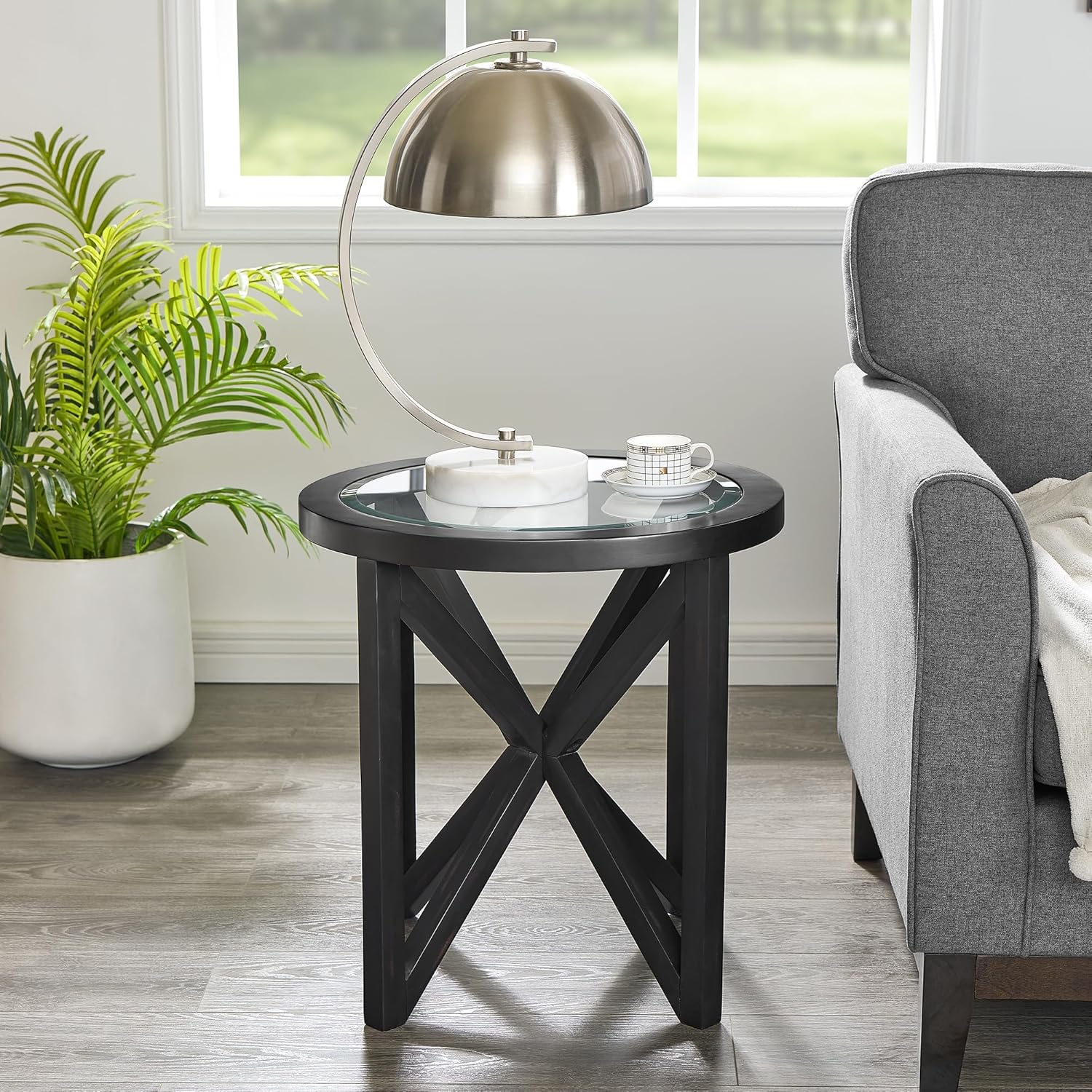 Modern simple glass coffee table, tempered glass coffee table solid wood base round transparent glass top modern living room terrace study coffee table (Black) W1781127575