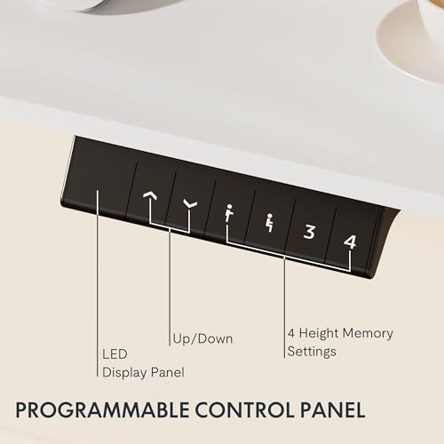 FLEXISPOT EC1 Electric Standing Desk Whole Piece 48 x 24 Inch Desktop Adjustable Height Desk Home Office Computer Workstation Sit Stand up Desk (White Frame + 48" Black Top)