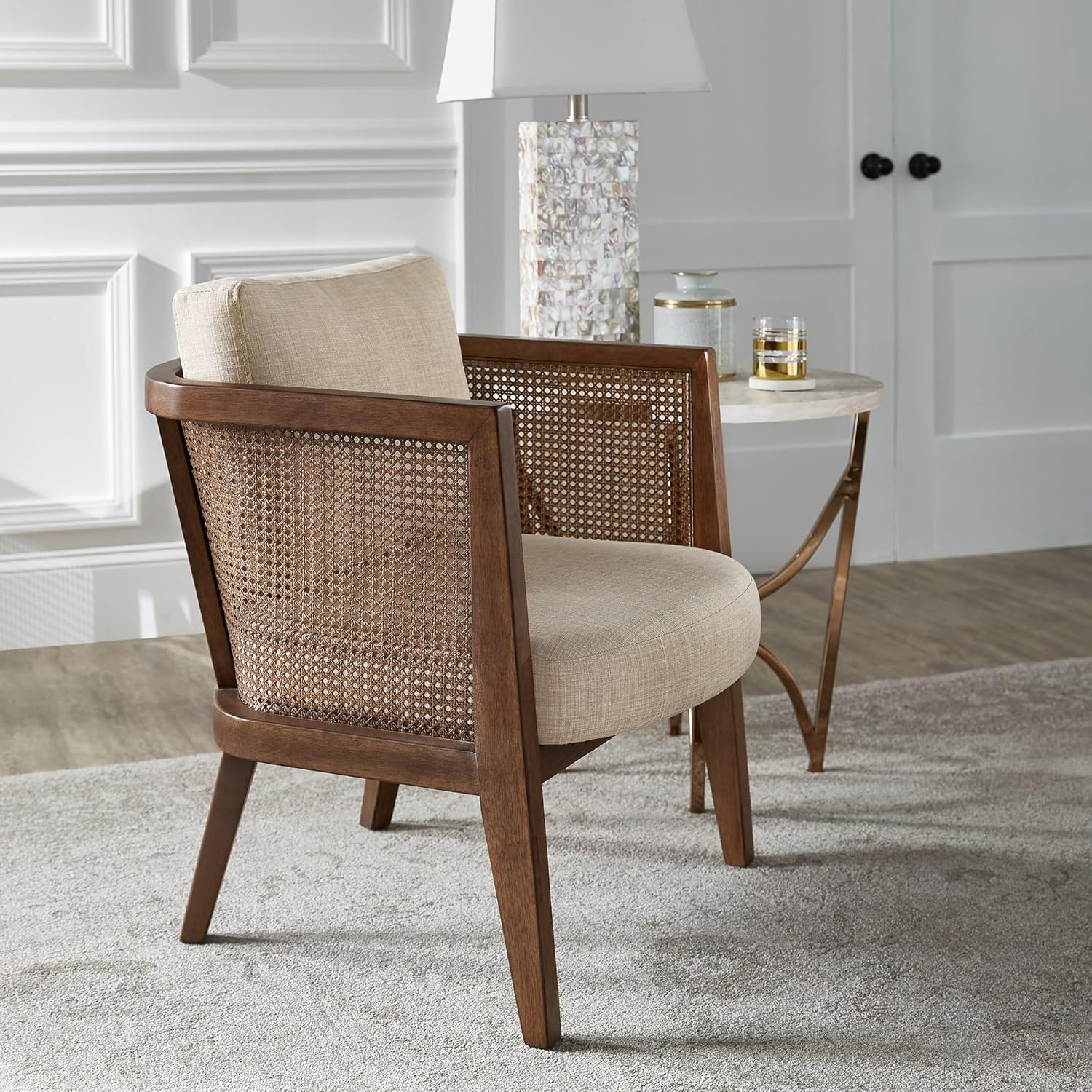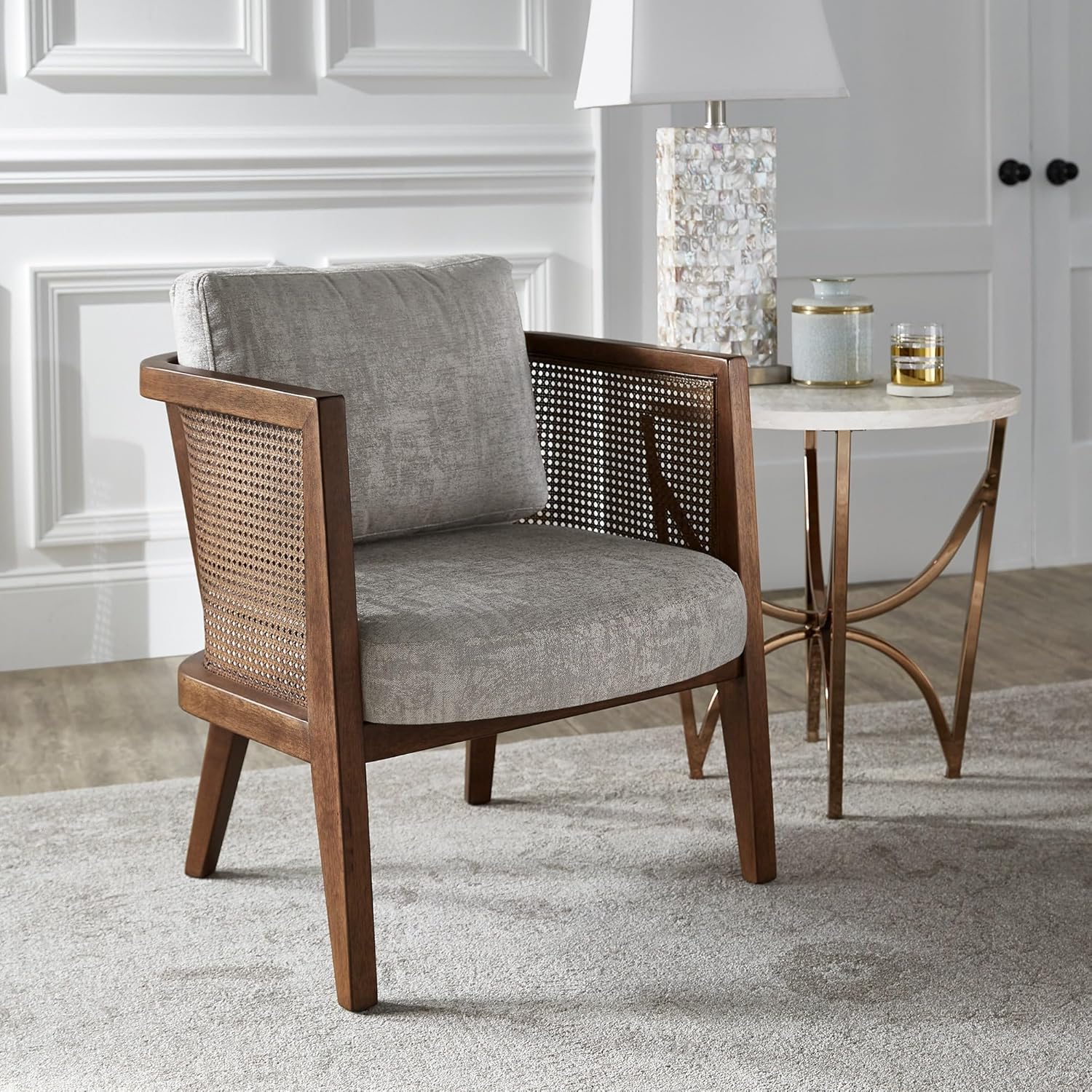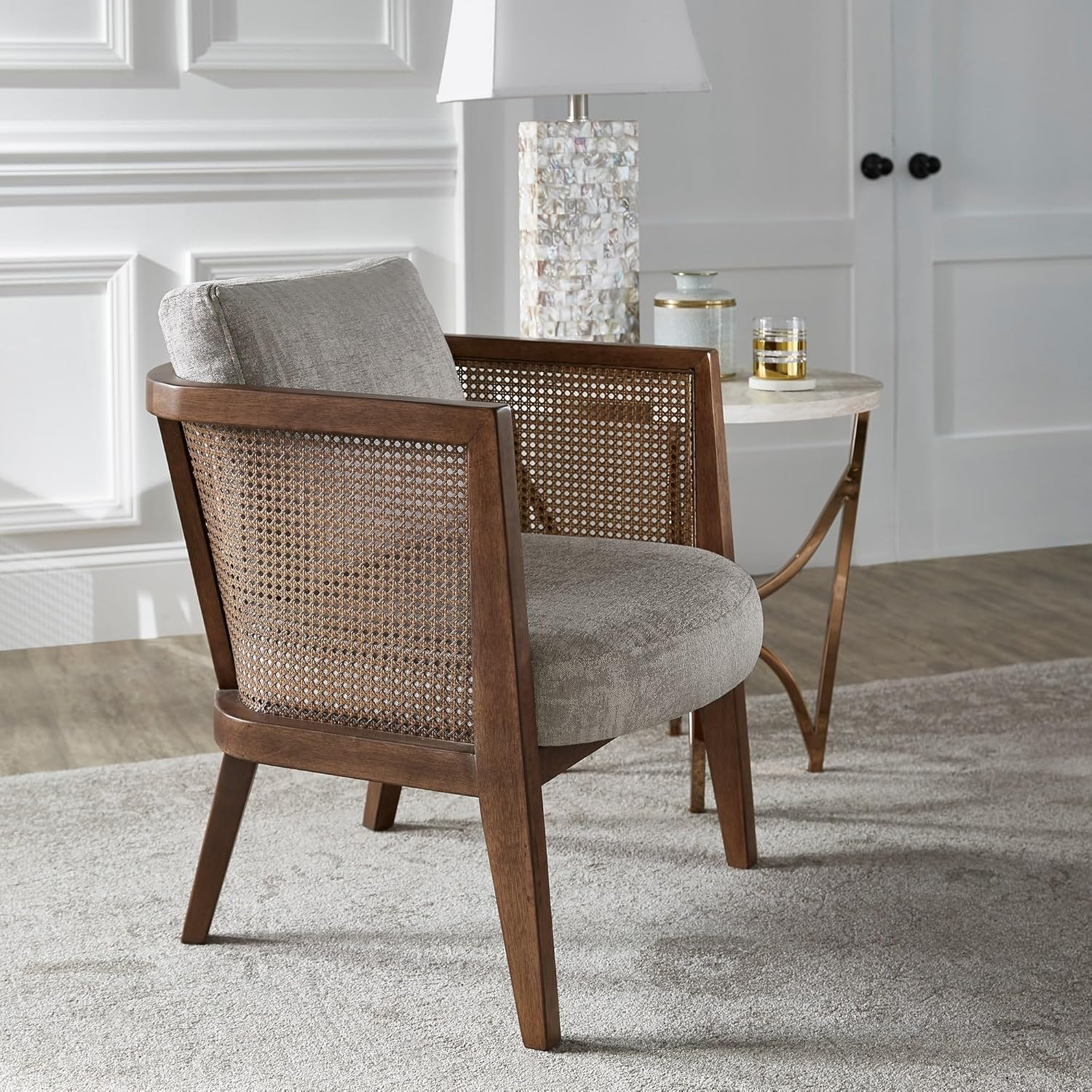 Inspire Q Celann Walnut Finish Fabric Cane Accent Chair by Modern Grey