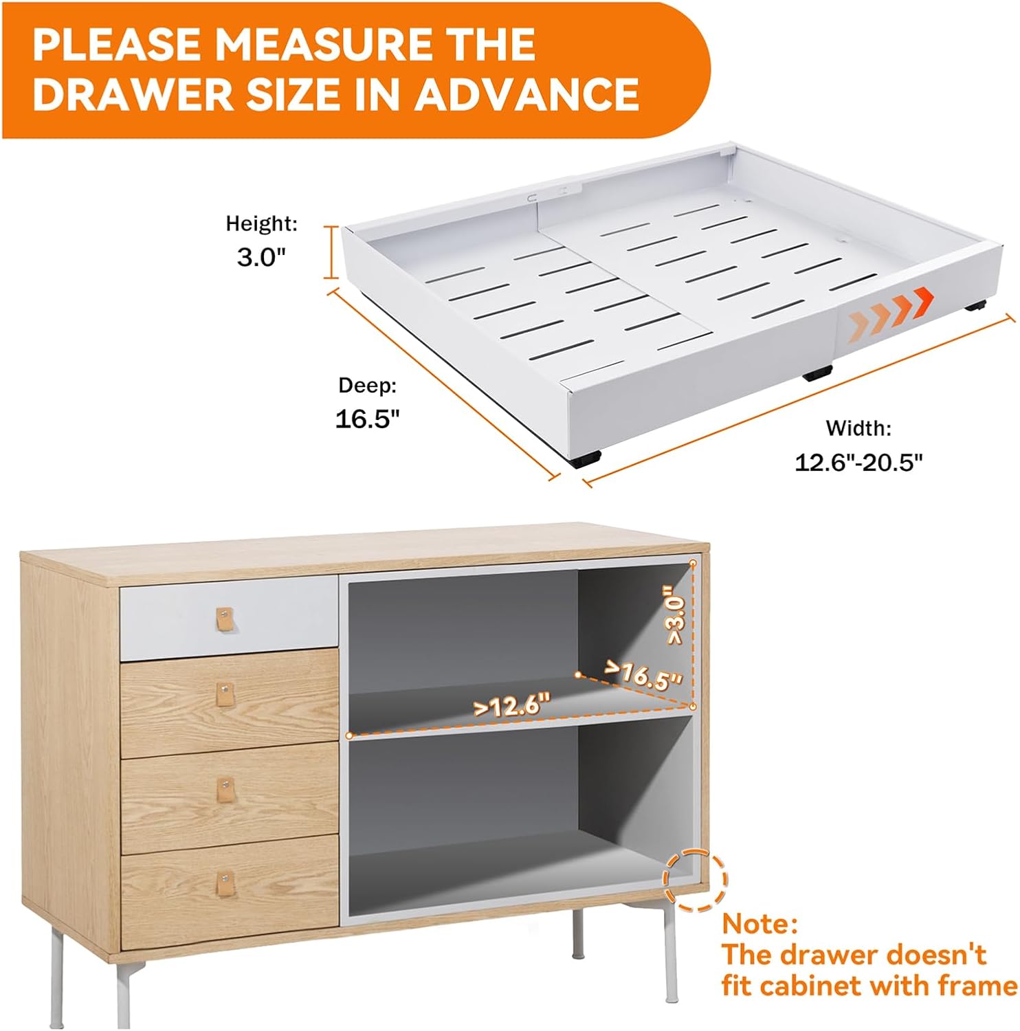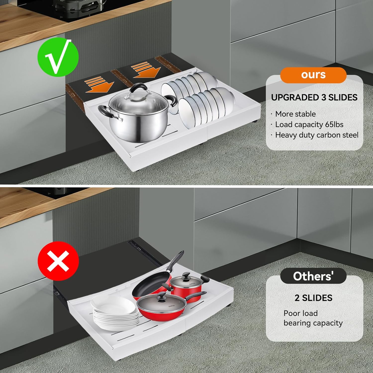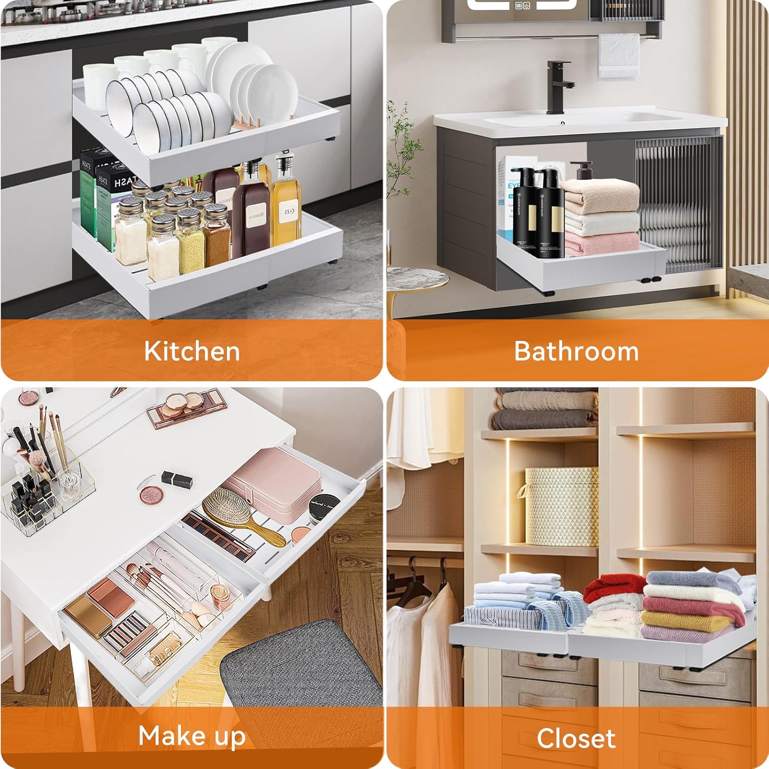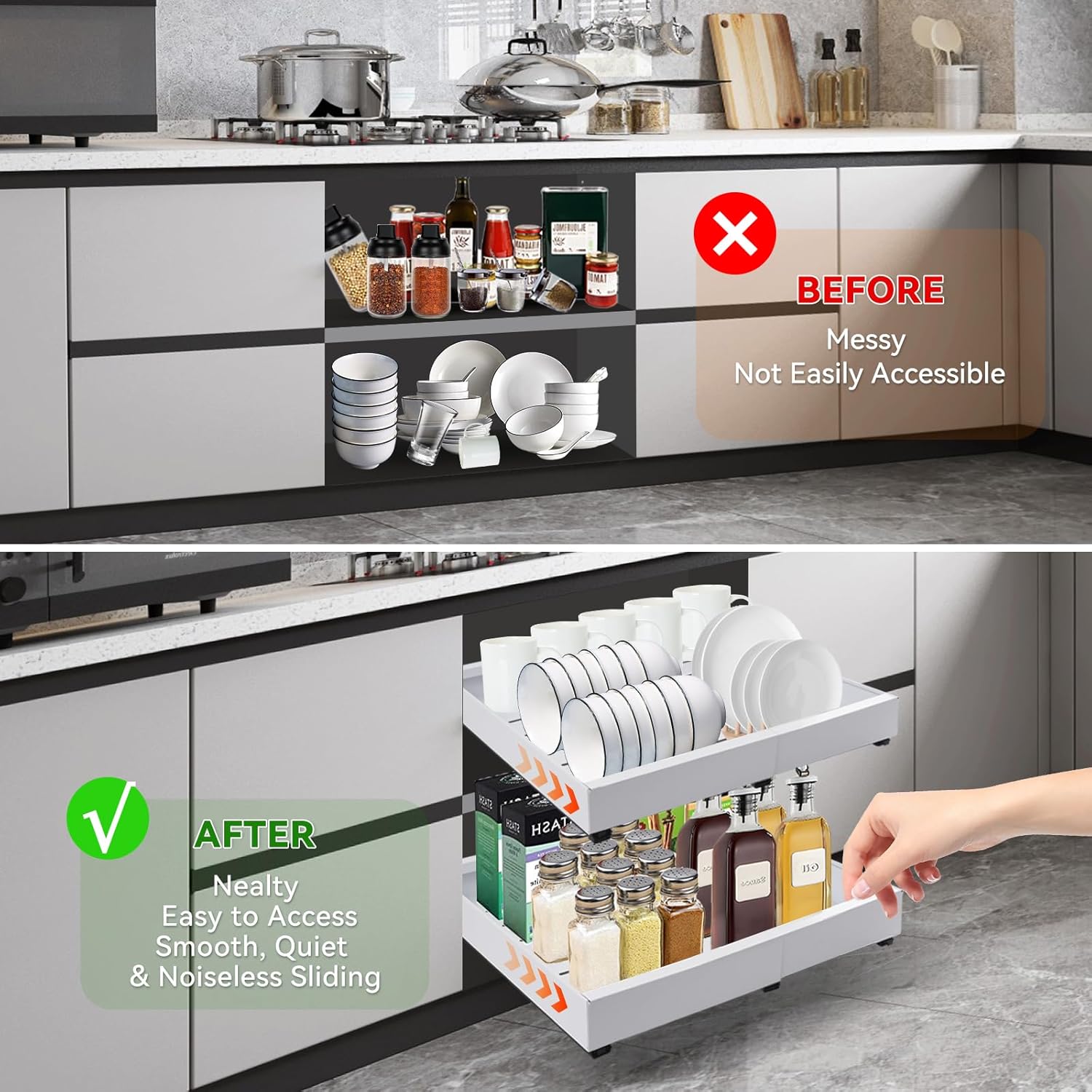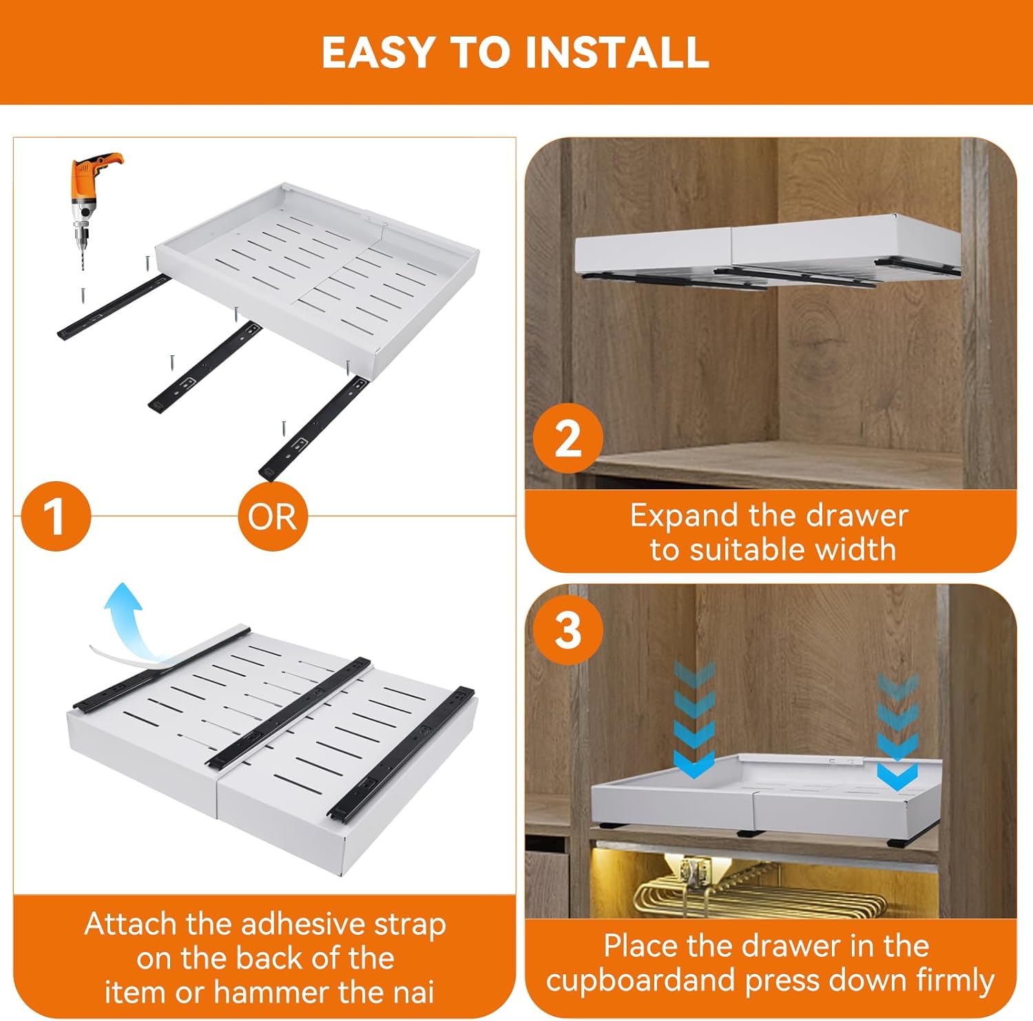 Pull out Cabinet Organizer, Expandable(12.6"-20.5") Slide out Drawers 1pack Heavy Duty Cabinet Roll out Shelves Adhesive with Nano Film for kitchen Pantry Bathroom Organizers and Storage