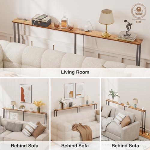 78" Narrow Console Sofa Table - 2 Power Outlets & 2 USB Ports, Metal Frame, Rustic Brown, 2 Pack - Perfect for Hallway, Office, and Behind Sofa - Easy Assembly, 4.9" Extension Cord Included