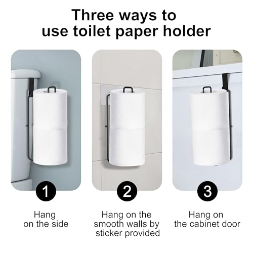 Black Toilet Paper Holder, Bathroom Toilet Paper Roll Holder with Reserve, Over The Tank Toilet Paper Holder with Storage, Bathroom Tissue Holder for 2 Rolls, Toilet Paper Holder Wall, 1PC