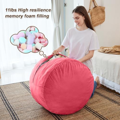 RAINBEAN Bean Bag Chair,Deluxe Velvet Super Soft Lazy Sofa Fur with Memory Foam Filled,Comfortable Adult Bean Bag Chair for Living Room Bedroom College Dorm (28.7in/Black)