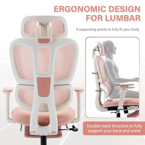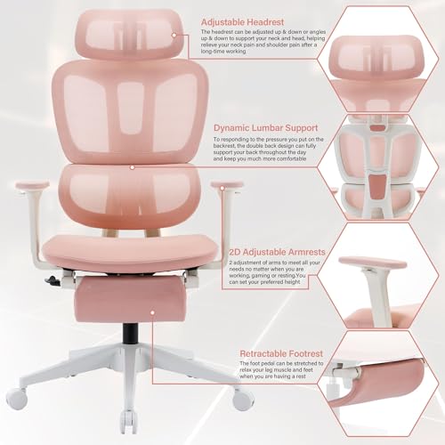 Ergonomic Office Chair with Foot Rest, High Back Computer Office Chair with Dynamic Lumbar Support, 2D Headrest, 4D Armrest, Sponge Seat, Mesh Home Office Desk Chair for Adults, Black