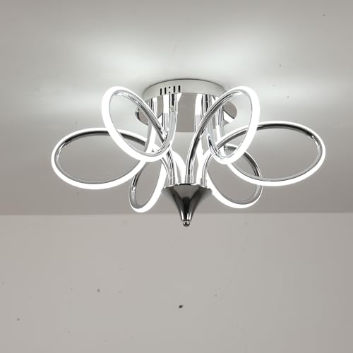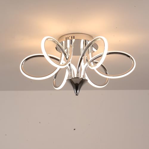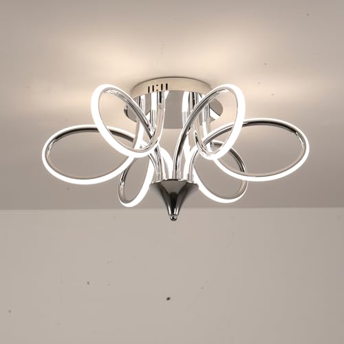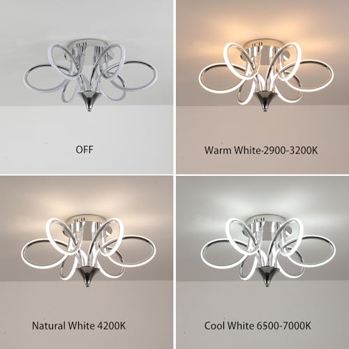Chrome/Black LED Ceiling Light with Remote Control, Dimmable Lustre with 3 Color Temperature,6 Lights Chandelier for Dining Room Foyer Bedroom Living Room Kitchen Study Room (Chrome, Dia22" x H11")