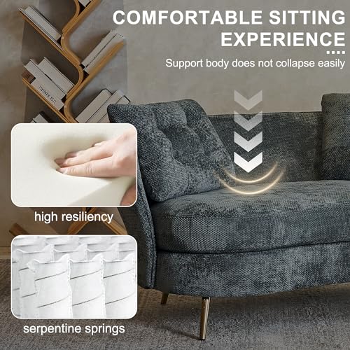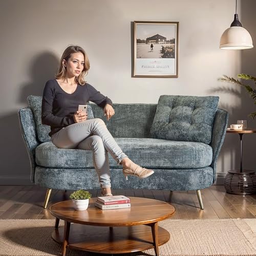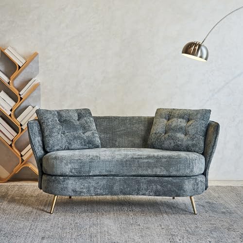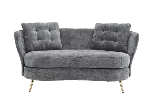 64" Upholstered Loveseat Sofa,Modern Club Couch with Golden Metal Legs,2 Seater Small Sofa Sleeper Couch for Living Room,Bedroom,Office,Small Space,Studio,Black