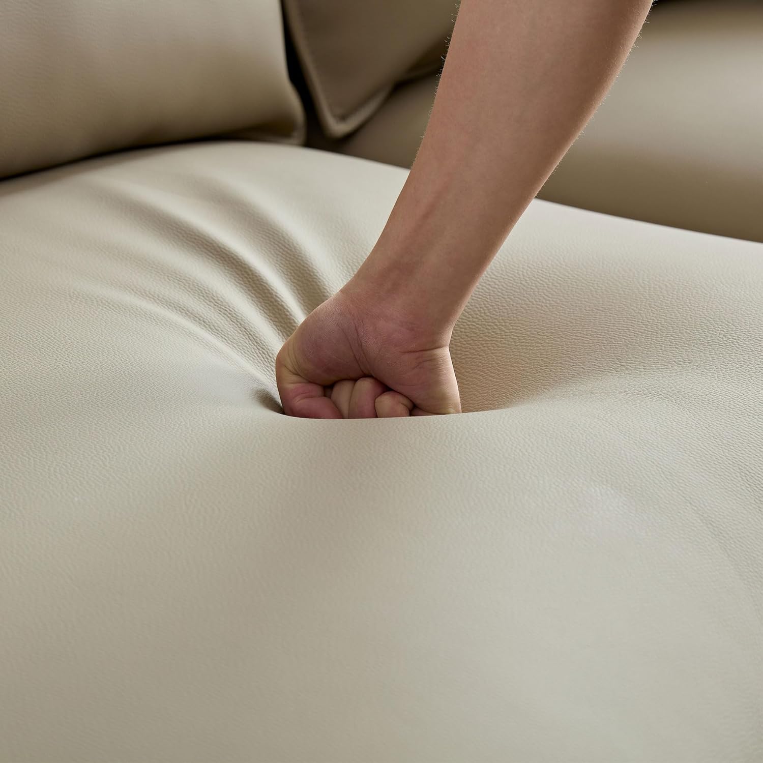124.8" Boucle Curved Sofa Cloud Couch for Living Room, Upholstered 4-Seat Sofa Couch Eco-Leather Couch Sofa for Home Apartment Office, Left Hand Facing,Grey